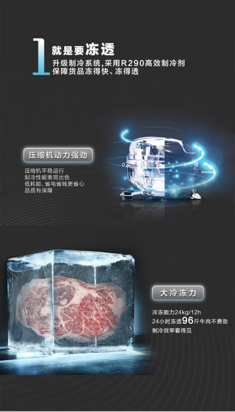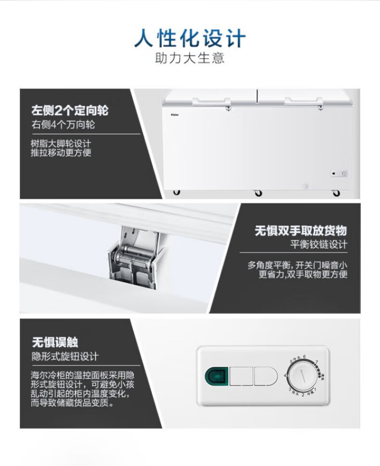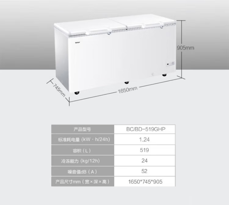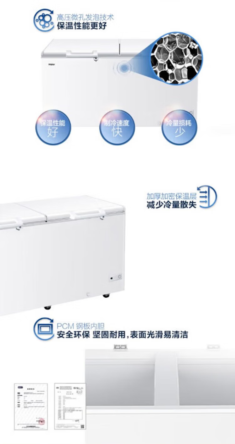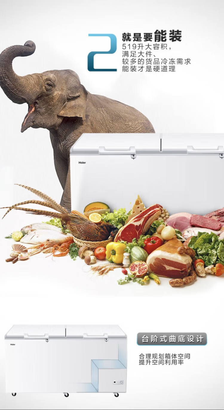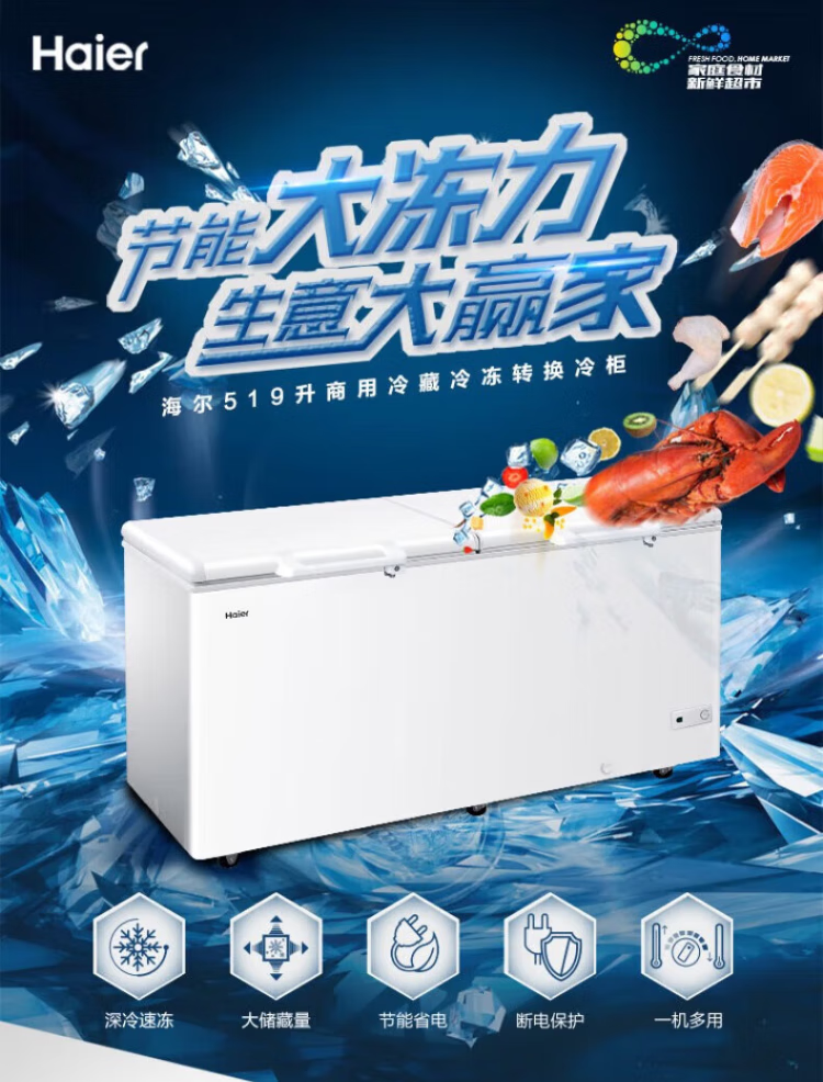 海尔(Haier) 冰柜 卧式冷冻柜 大富豪商用冷藏冷冻转换保鲜柜 顶开门大容量冰柜 519GHP 机械控温PCM内胆 519L