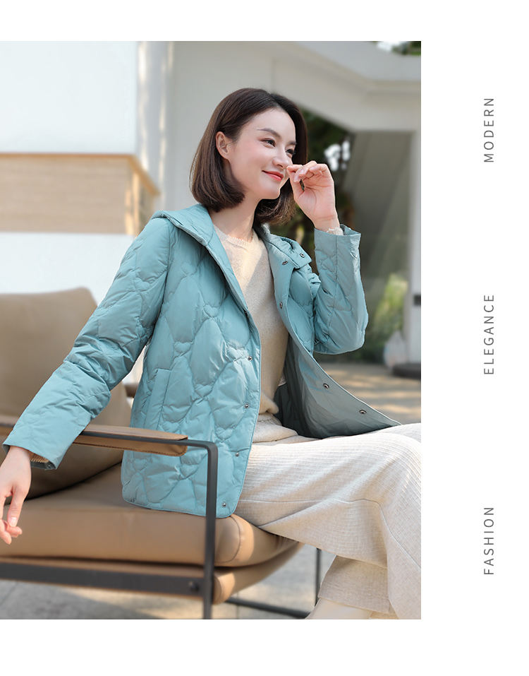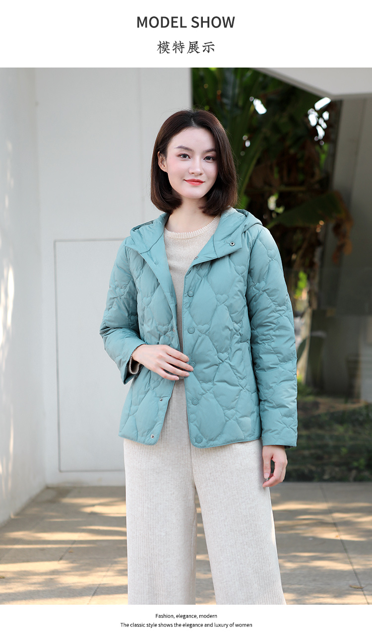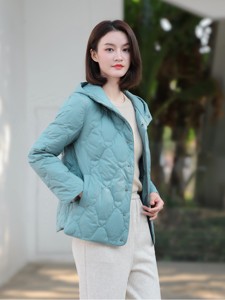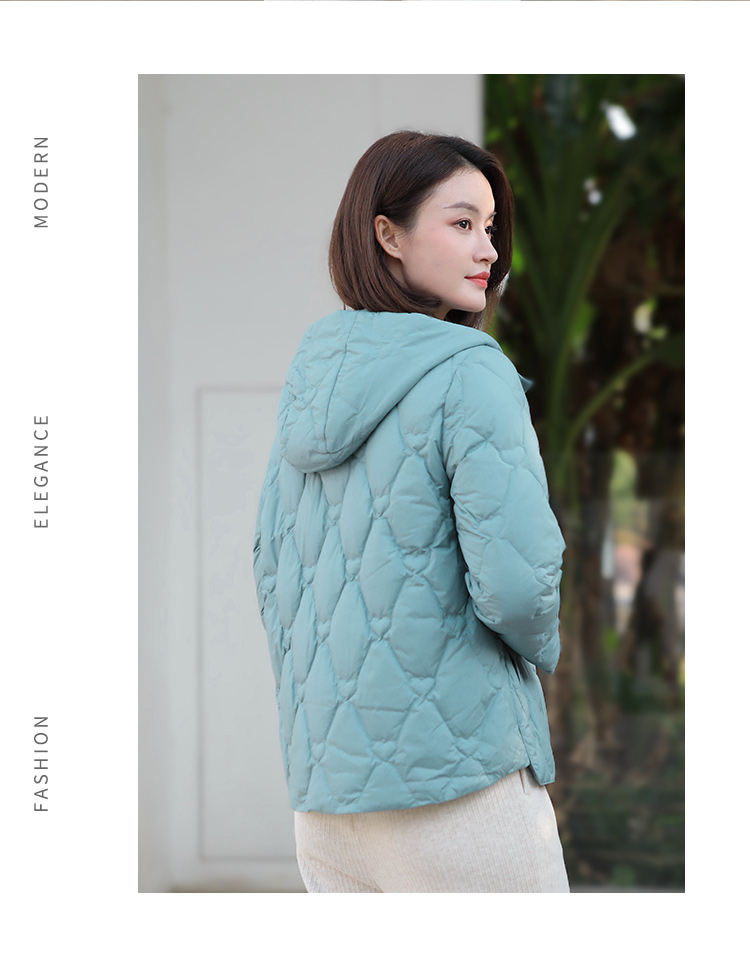 佐尔美冬季新款短款减龄连帽保暖菱形格羽绒服外套女E34YY06