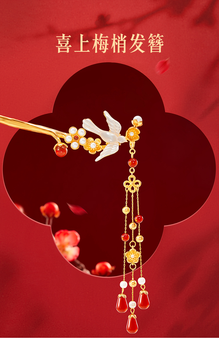 【故宫饰品】喜上梅梢发簪文创发饰新中式簪子古风发钗新婚生日礼物