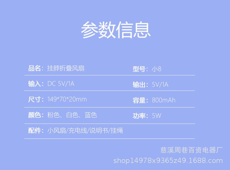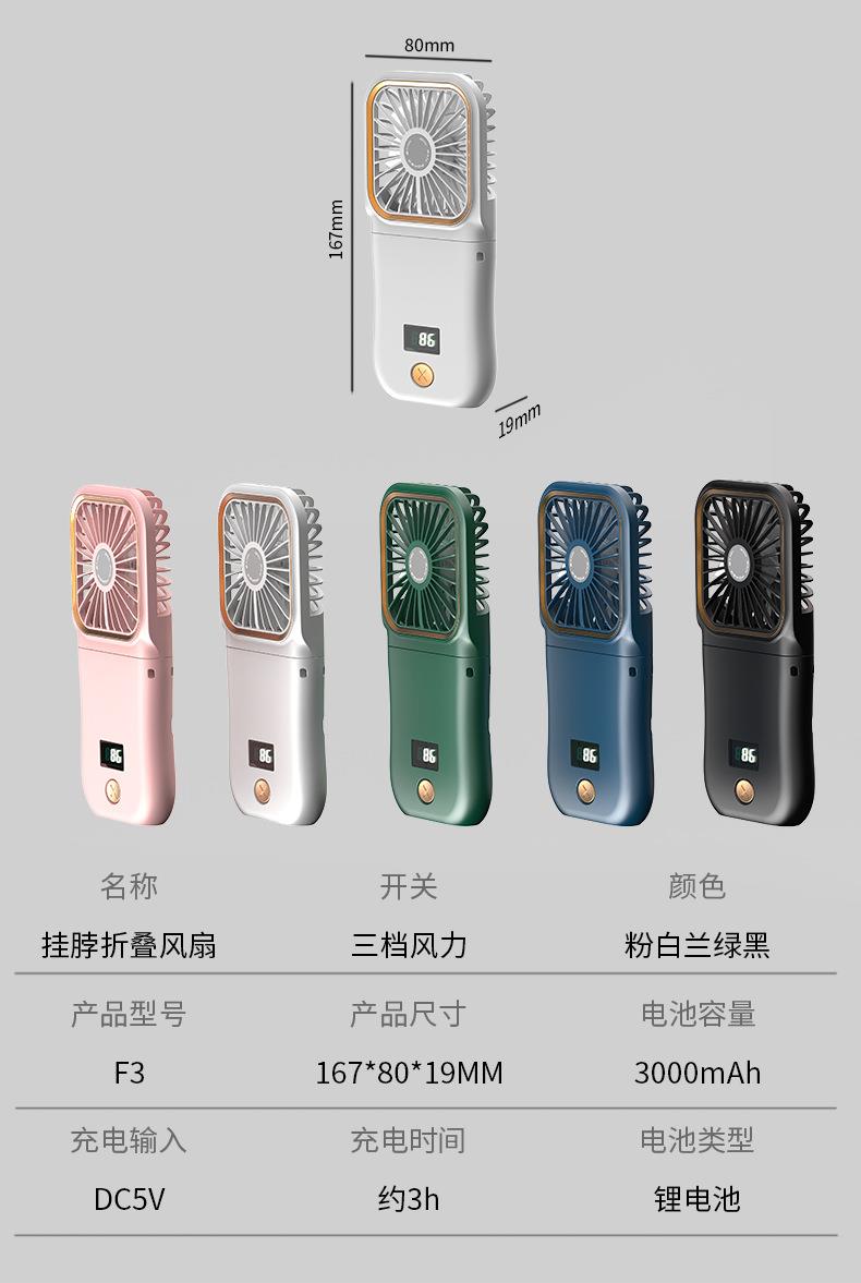 手持小风扇桌面小风扇便携式 usb风扇迷你充电宝折叠风扇挂脖风扇