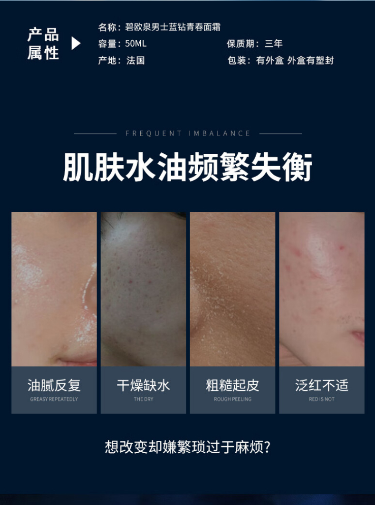 【12月套装】碧欧泉 男士蓝钻面霜50ml 赠:碧欧泉蓝钻细致洁面乳40ml*2+碧欧泉男士紧致淡纹抗皱面霜20ml*2个