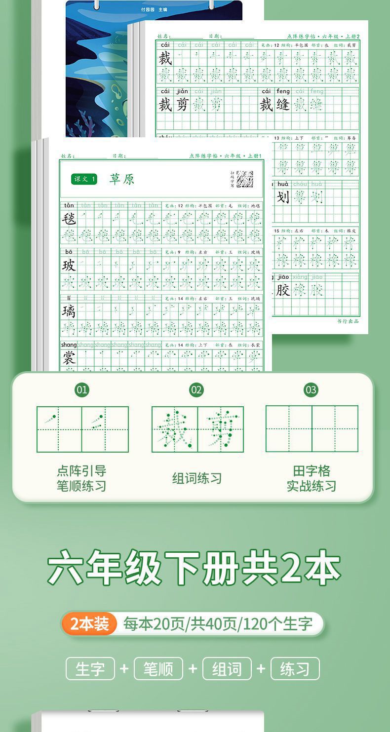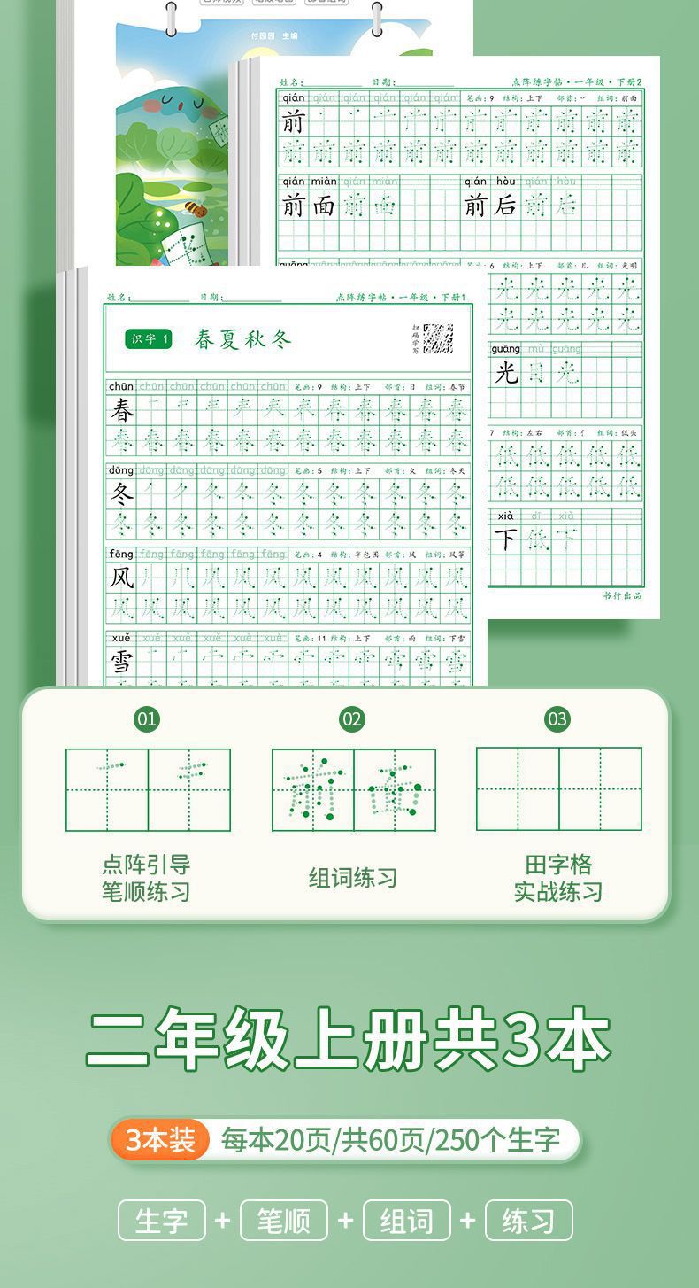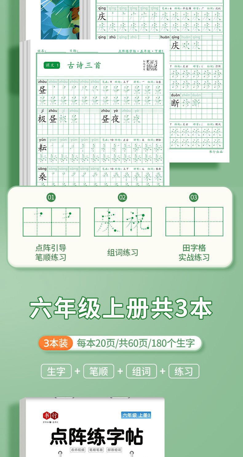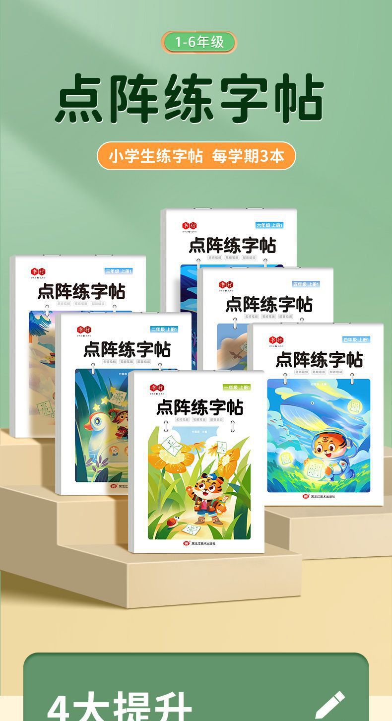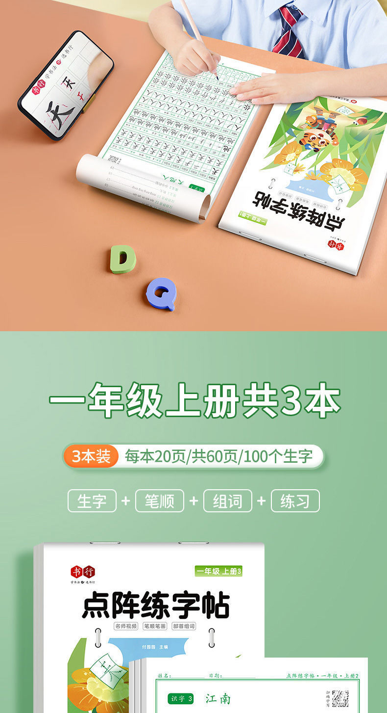 开学季福利!【有在线教程视频】3本装新版一二三四五六年级上下册语文课本同步描红本点阵练字帖