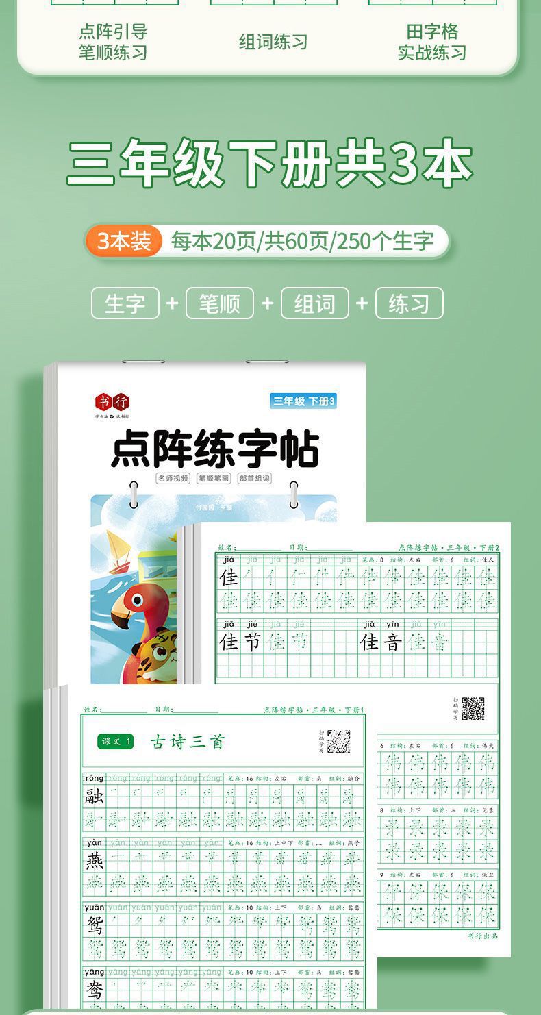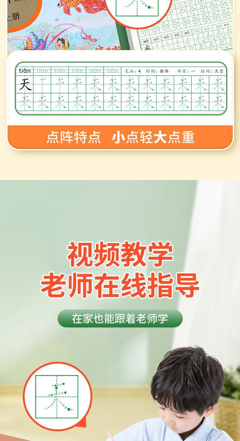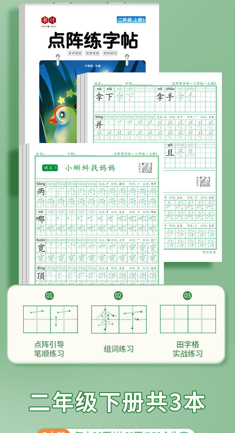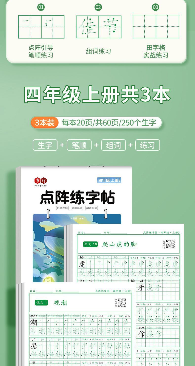 开学季福利!【有在线教程视频】3本装新版一二三四五六年级上下册语文课本同步描红本点阵练字帖