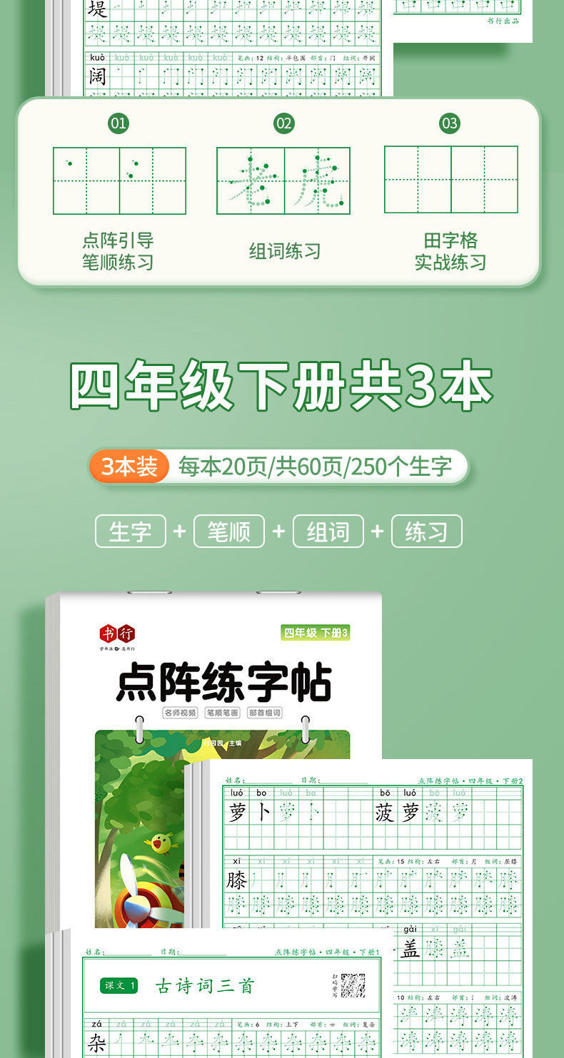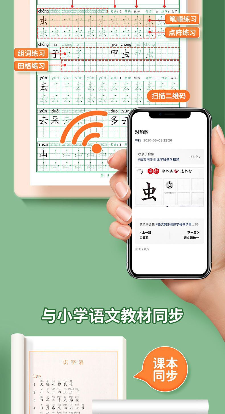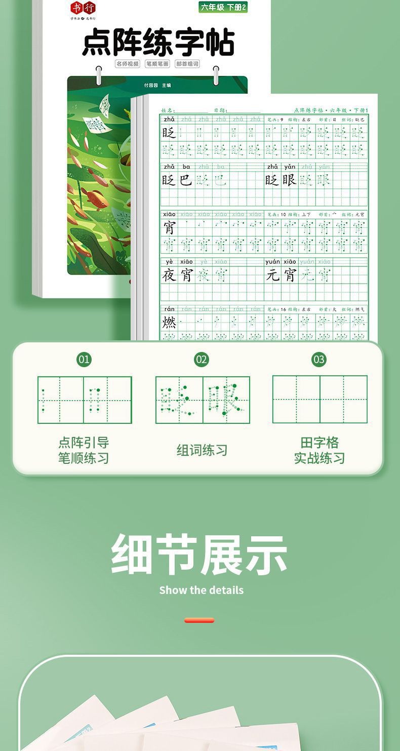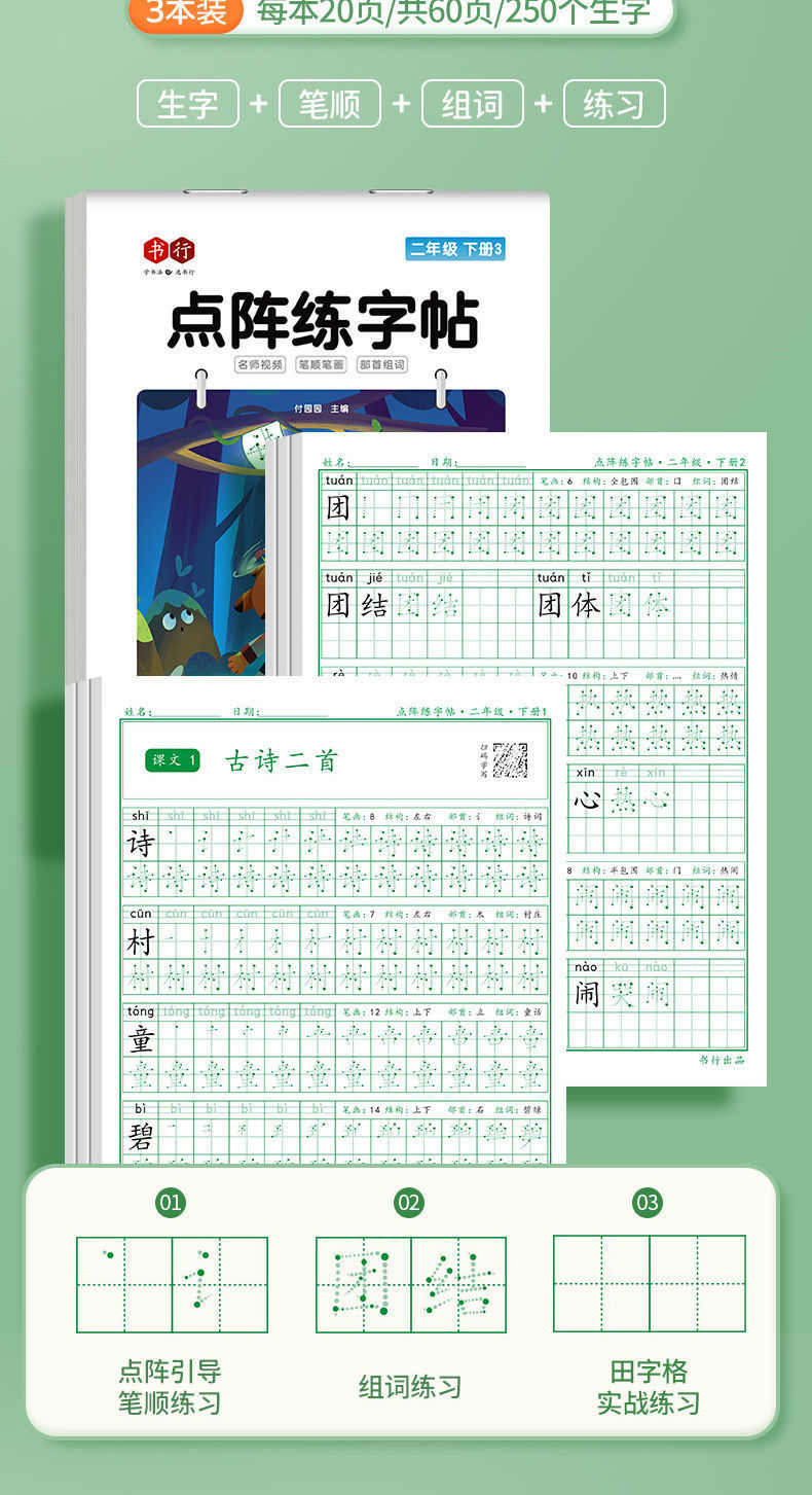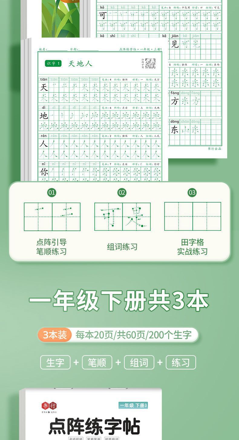开学季福利!【有在线教程视频】3本装新版一二三四五六年级上下册语文课本同步描红本点阵练字帖