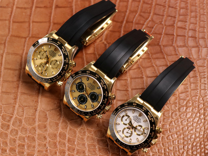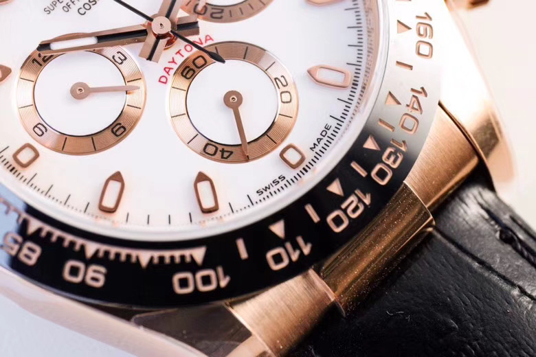 ,专属Cal.4130自动上链机芯,精钢镀厚金表壳。表壳厚度和正品一致,全部计时功能100%完全实现,史无前例的使用了订制版KIF避震器,整机根据真正的Cal.4130机芯设计,三层基板从倒角到太阳纹完全1:1尊重原厂设计,不止秒杀市面上一切副本迪通拿,也是唯一可以和正品媲美的副本迪通拿,秒天神器,无需考虑。
