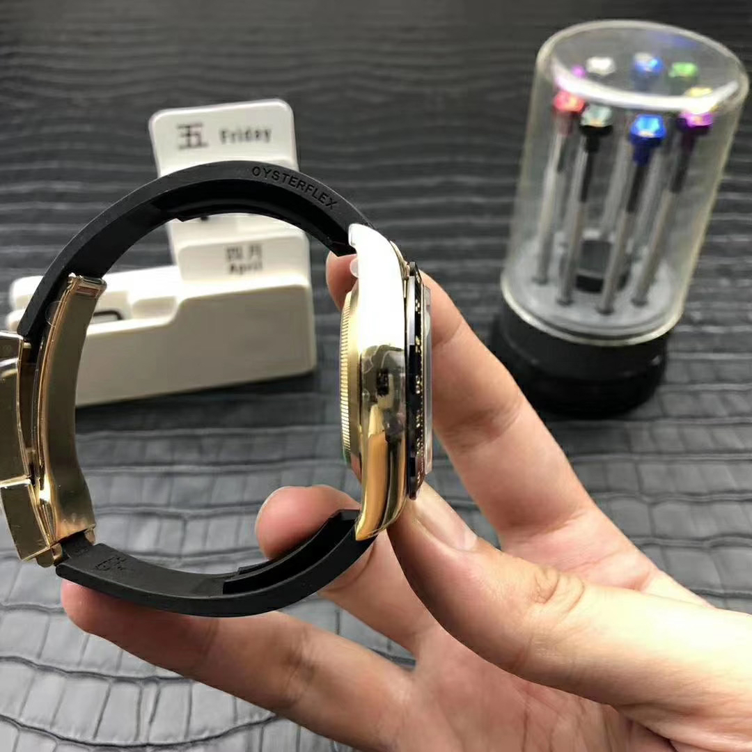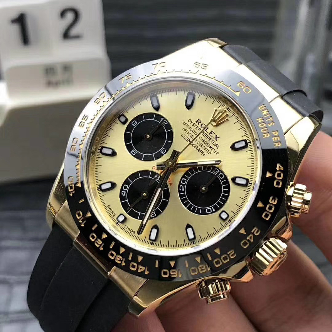 N劳li士黄金迪通拿V8最终版本m116518ln-0041,单独真正4130机芯,精钢镀厚金,黄金表壳。表壳厚度和zp一致,全部计时功能100% 实现, 使用了订制版KIF避震器。