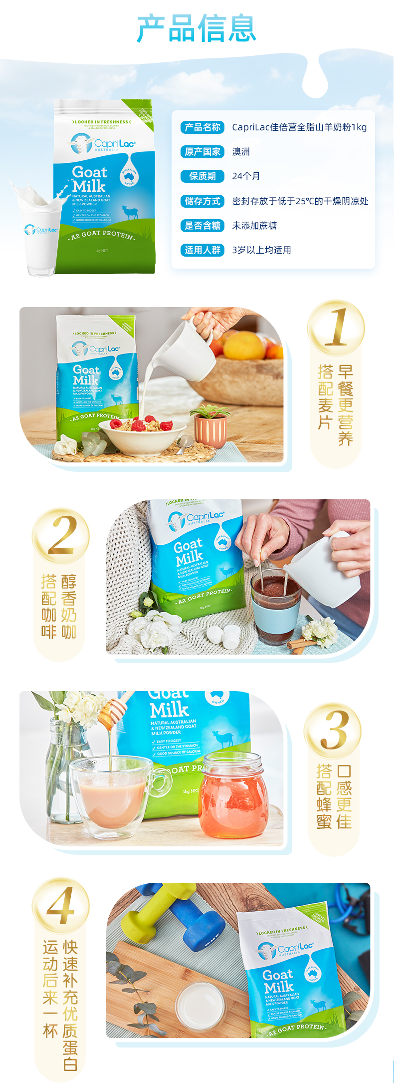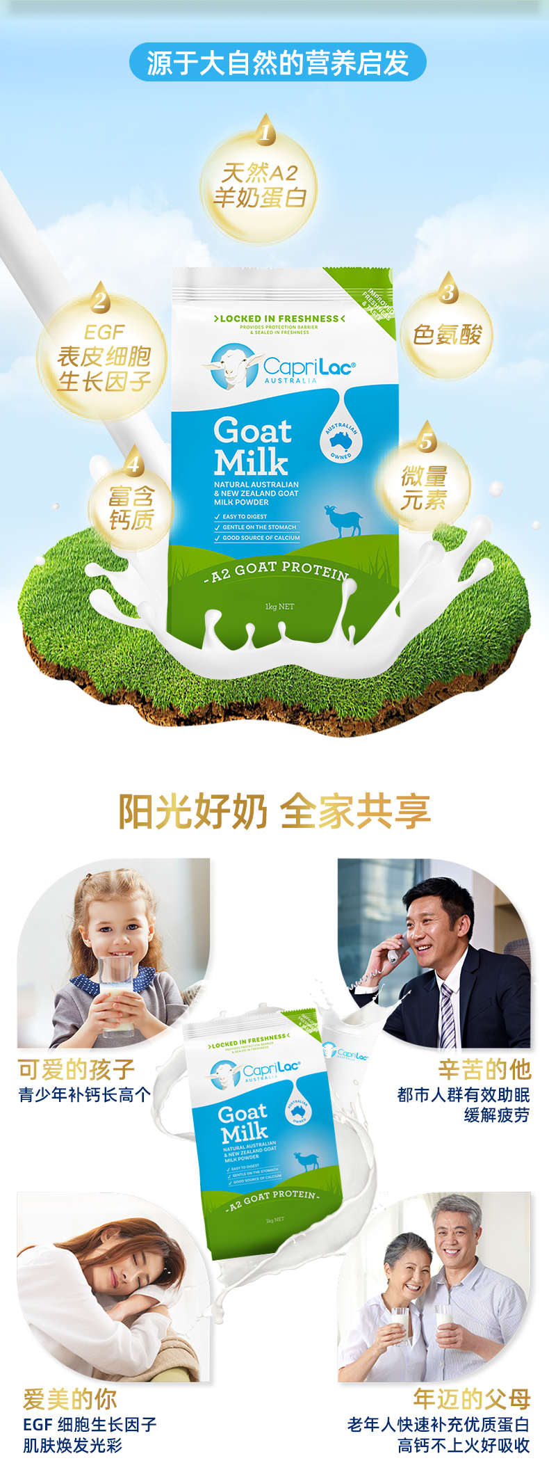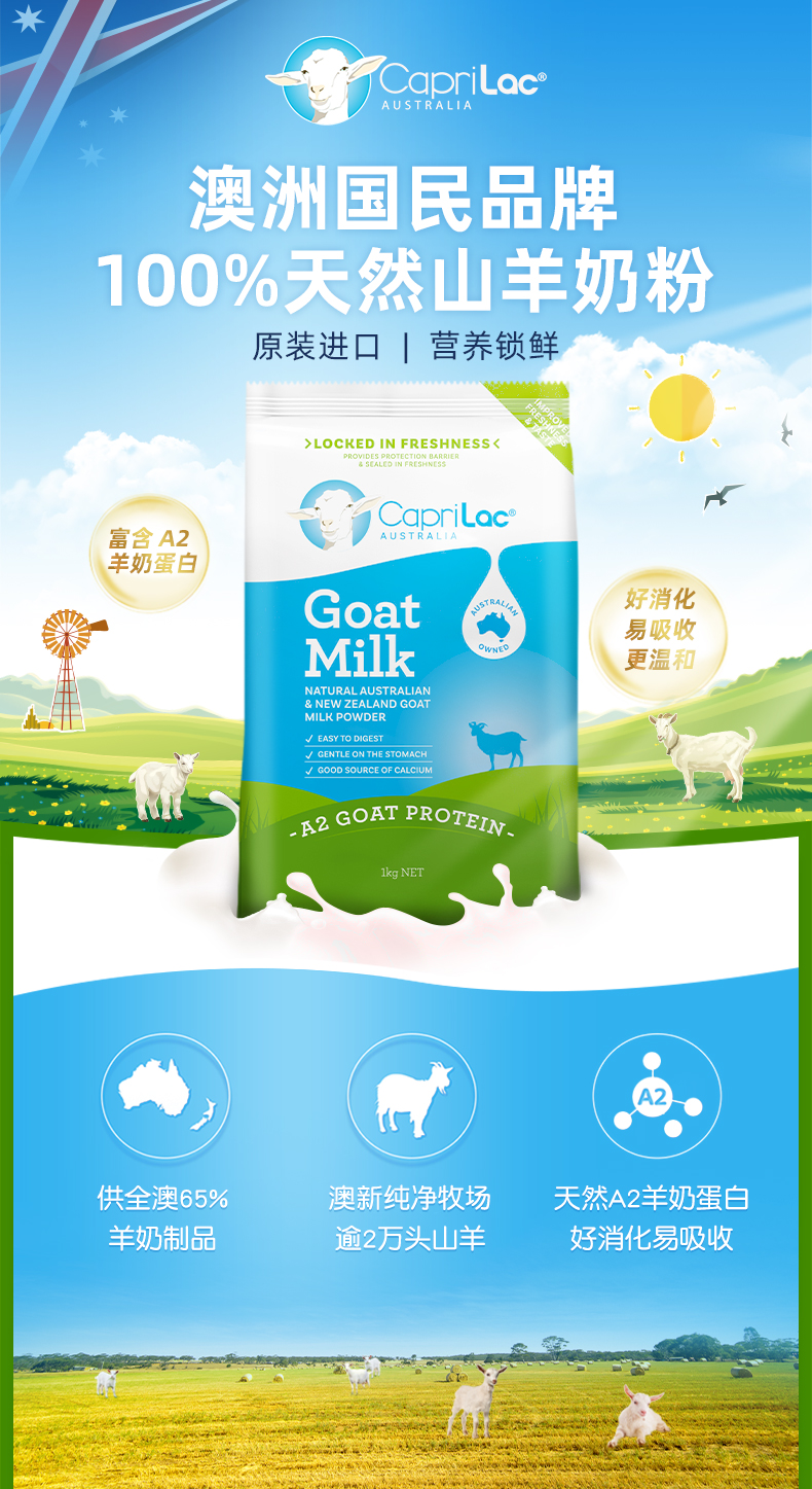 HNMG 澳洲Caprilac袋装成人中老年人女士学生高钙全脂纯山羊奶粉1kg