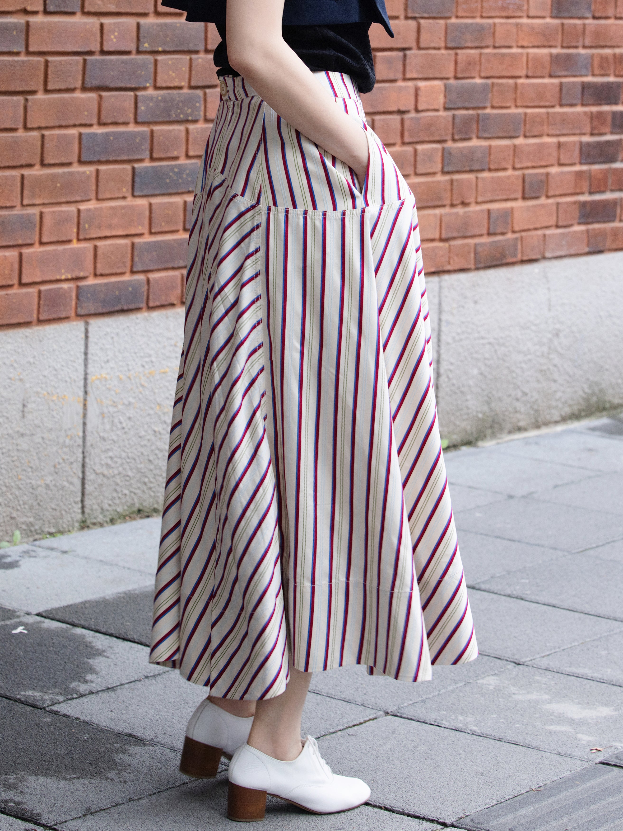 TYNVIE A字型分层中长裙-彩色斜纹