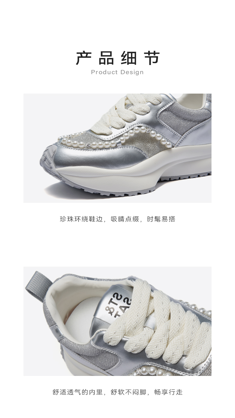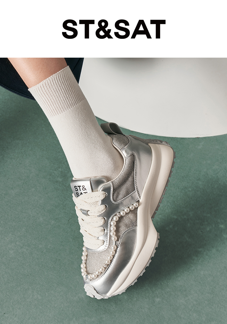 星期六珍珠链条太空银厚底运动鞋SSC3112019