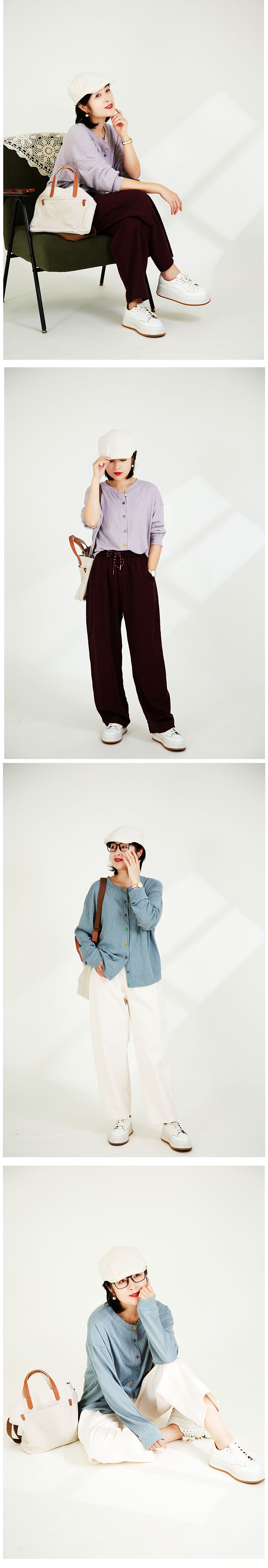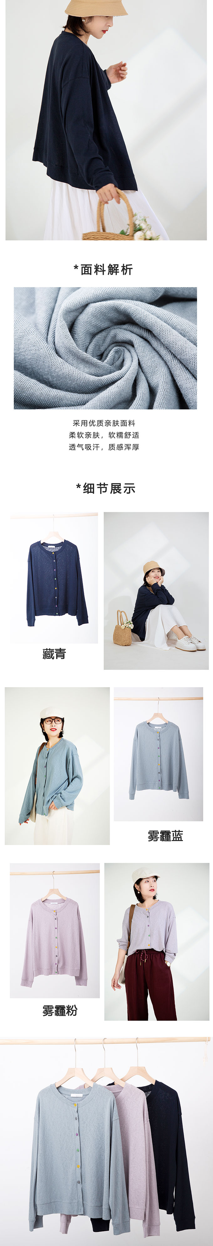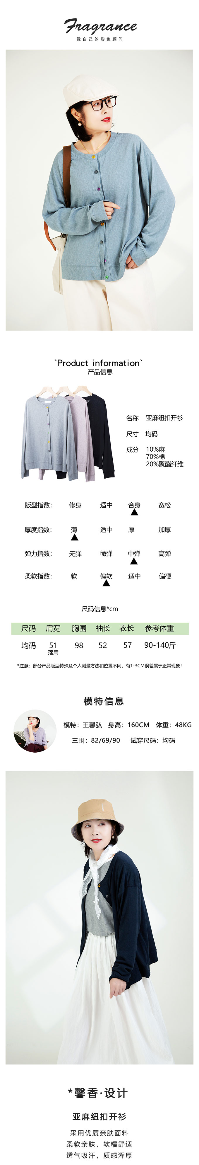 亚麻纽扣开衫