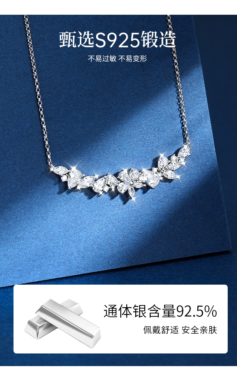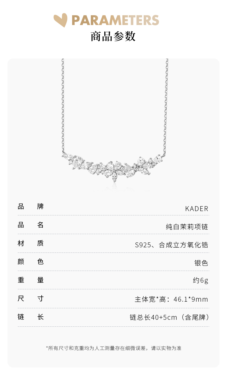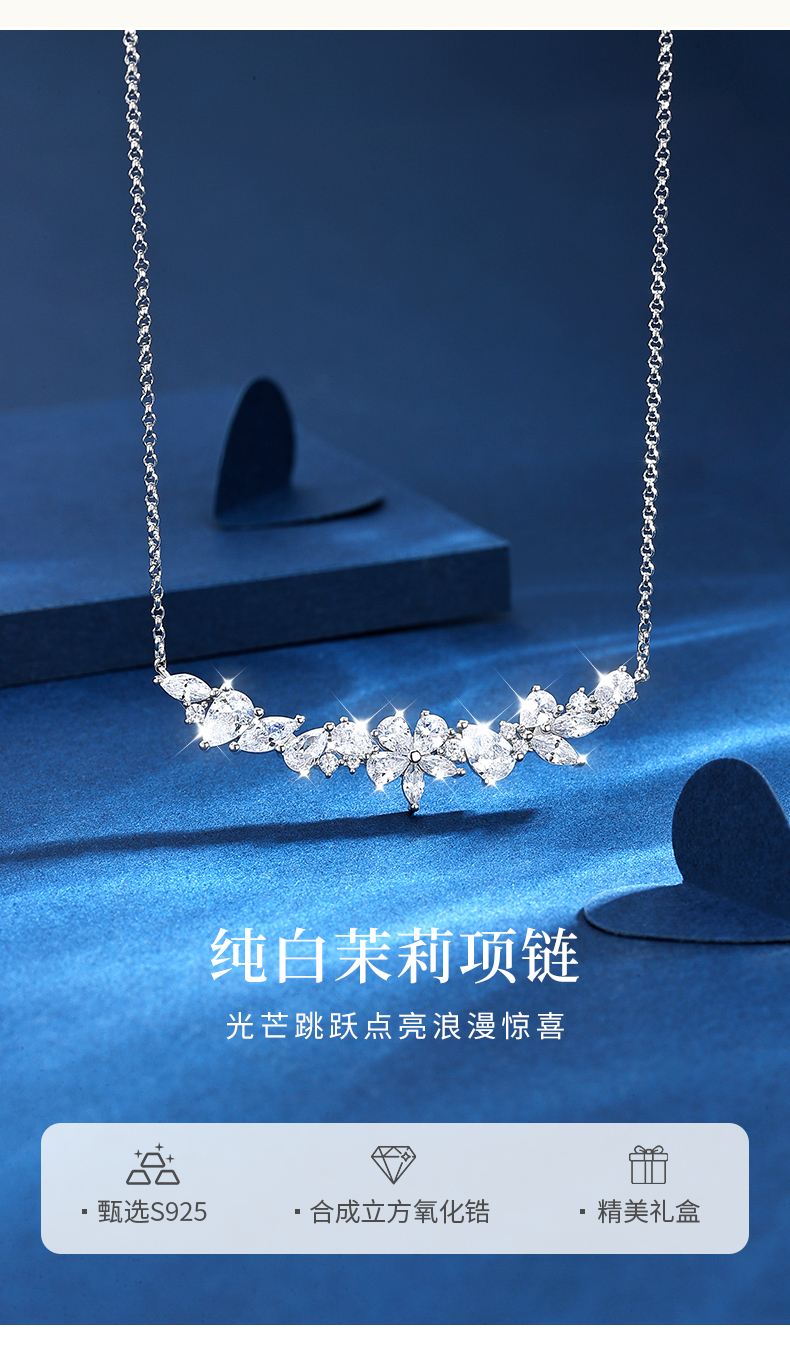 卡蒂罗纯白茉莉项链女纯银轻奢小众饰品高级设计感锁骨链毛衣链
