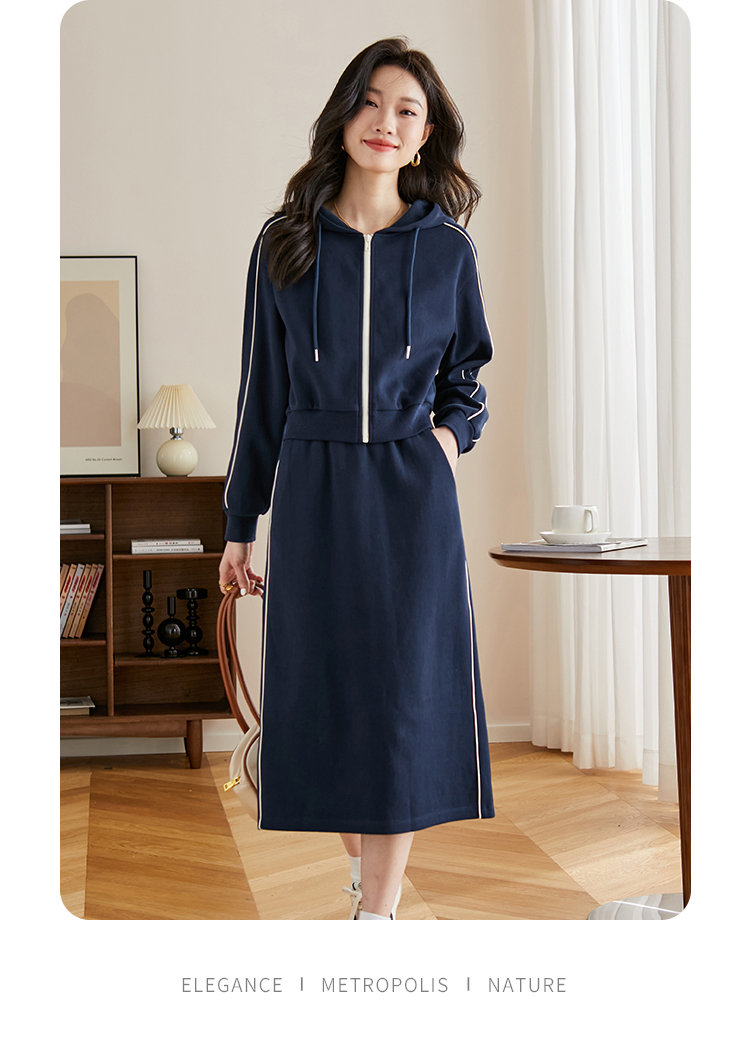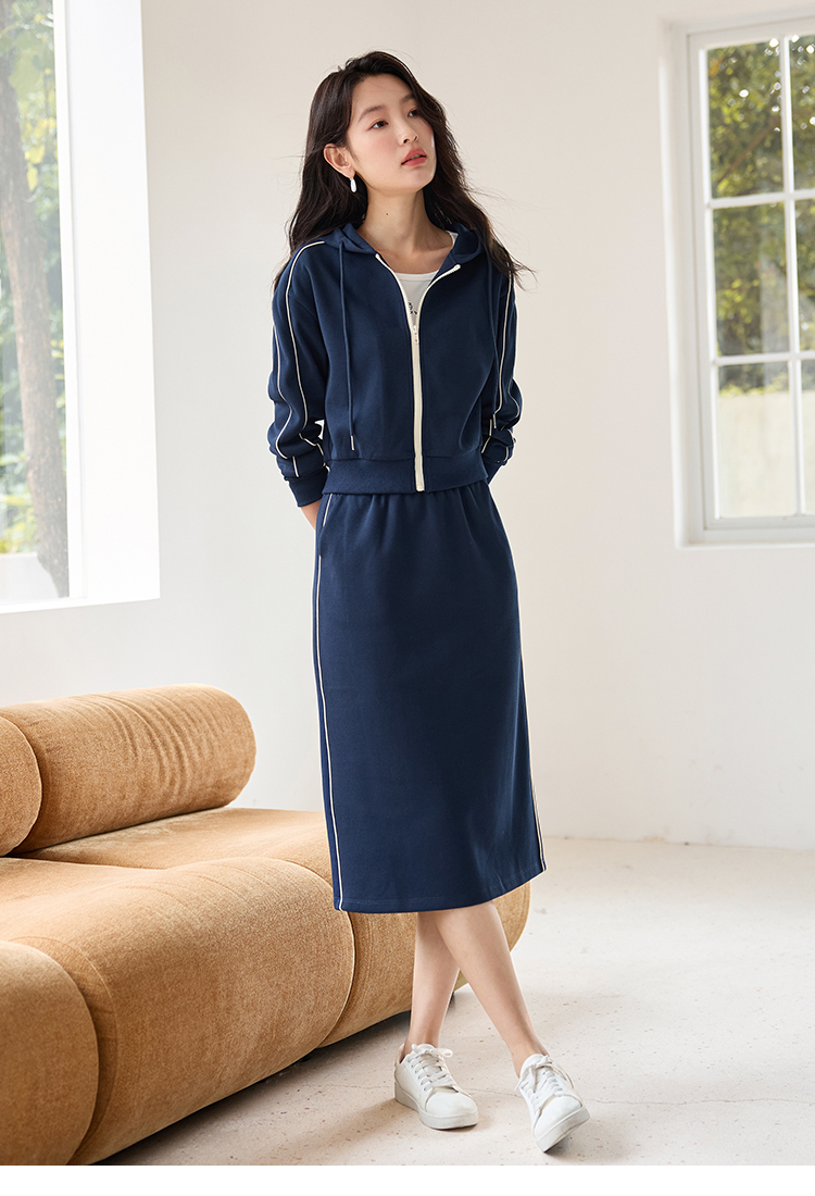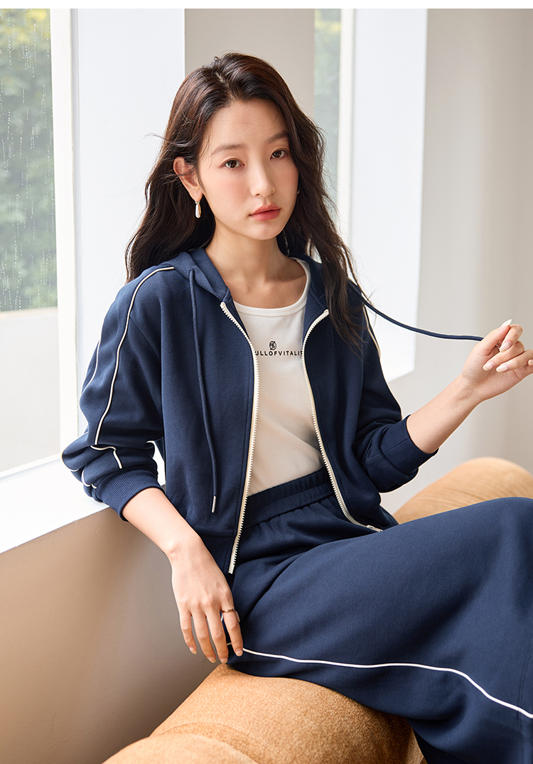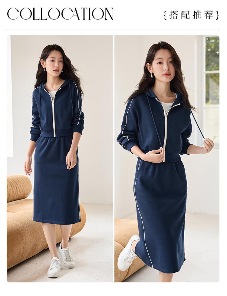 【年终特卖】熙世界连帽卫衣开衫半身裙套装秋装新款运动风时尚撞色休闲套装