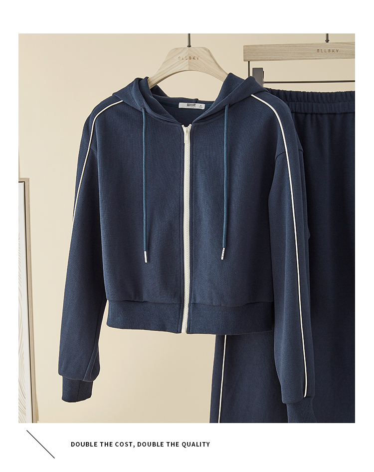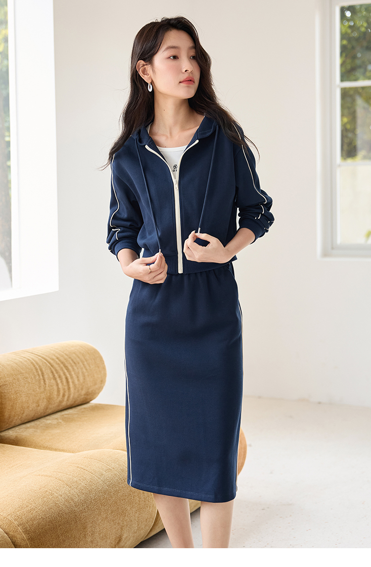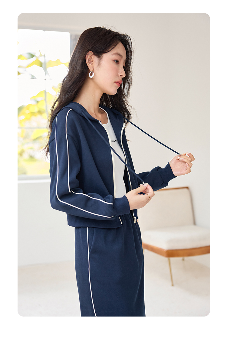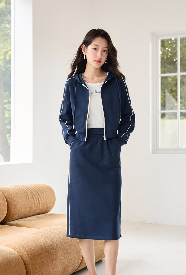 【年终特卖】熙世界连帽卫衣开衫半身裙套装秋装新款运动风时尚撞色休闲套装