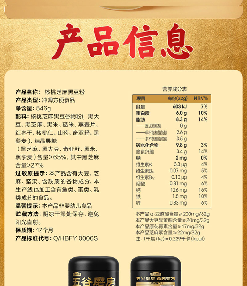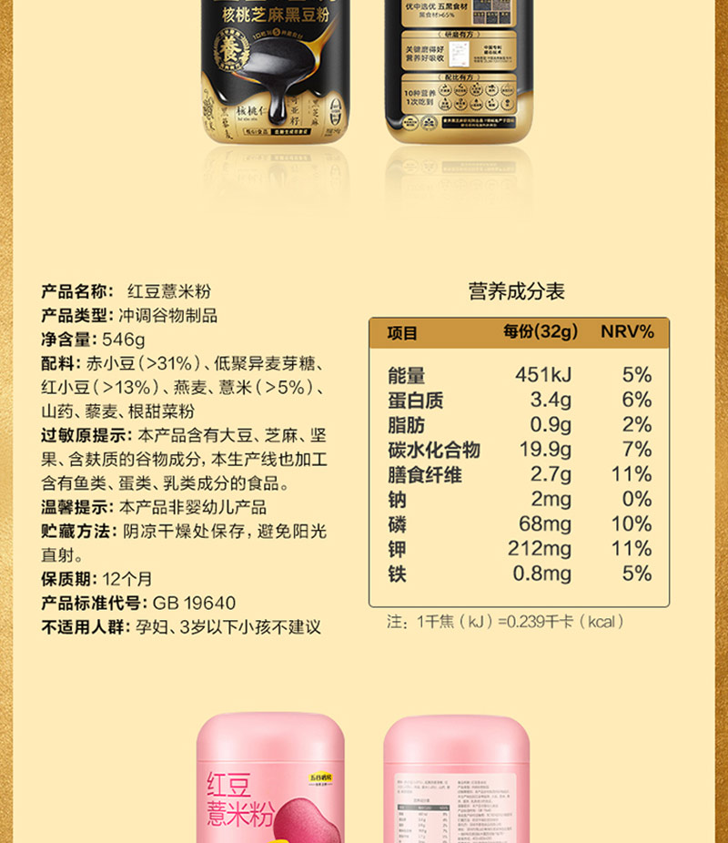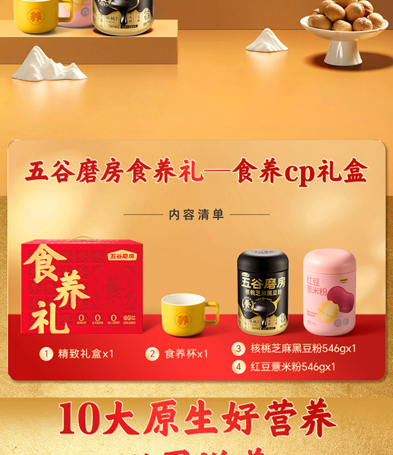 五谷磨房食养礼CP礼盒(1092g)黑粉546g+红粉546g+杯