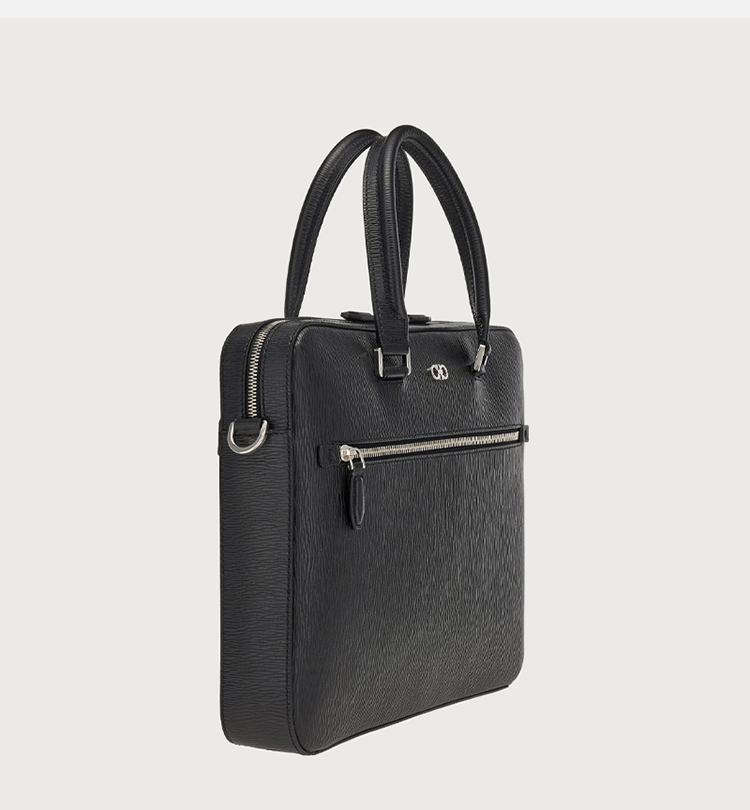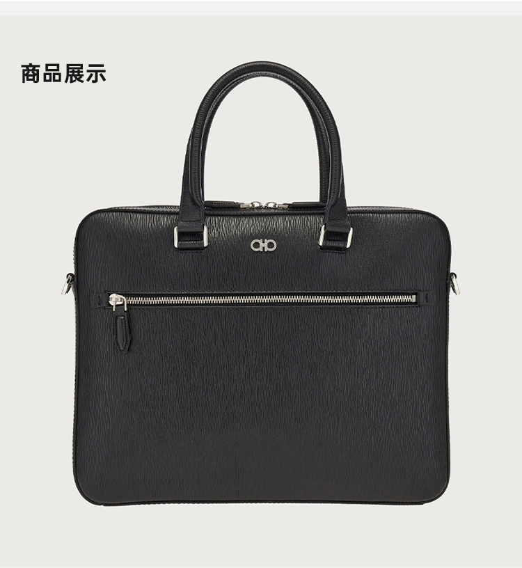【一】FERRAGAMO 菲拉格慕 男士锤纹小牛皮 GANCINI 手提公文包 黑色 24 0986 753418