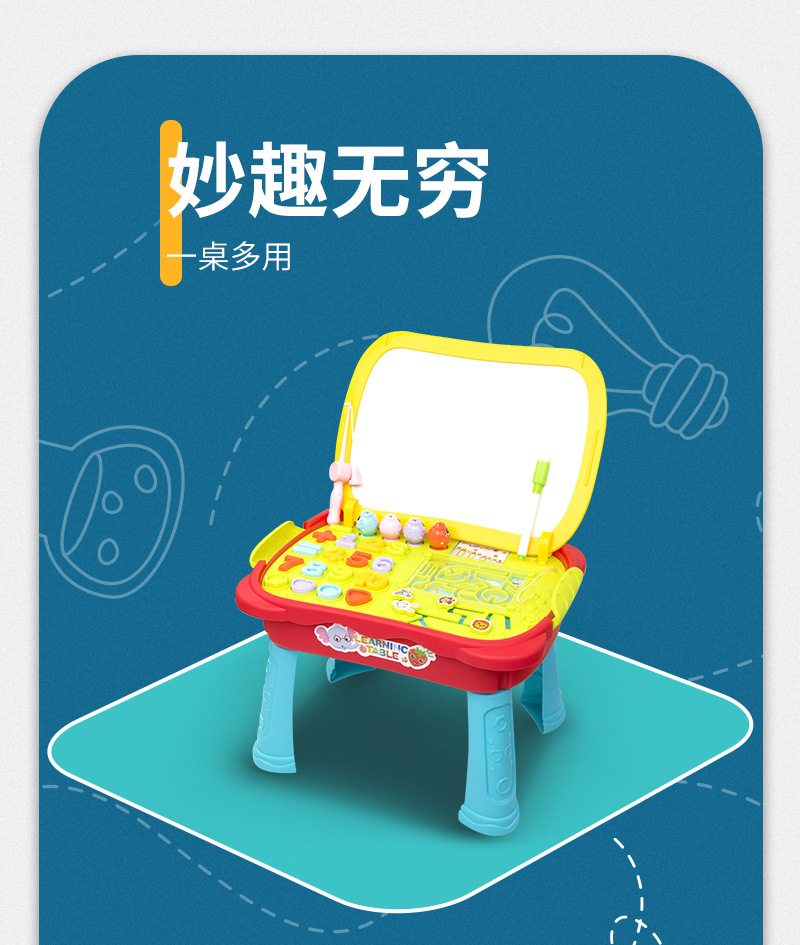 【画板/钓鱼/背乘法/钓鱼等8大功能 】儿童益智多功能游戏学习桌 过家家飞行棋钓鱼画板桌创意科教玩具