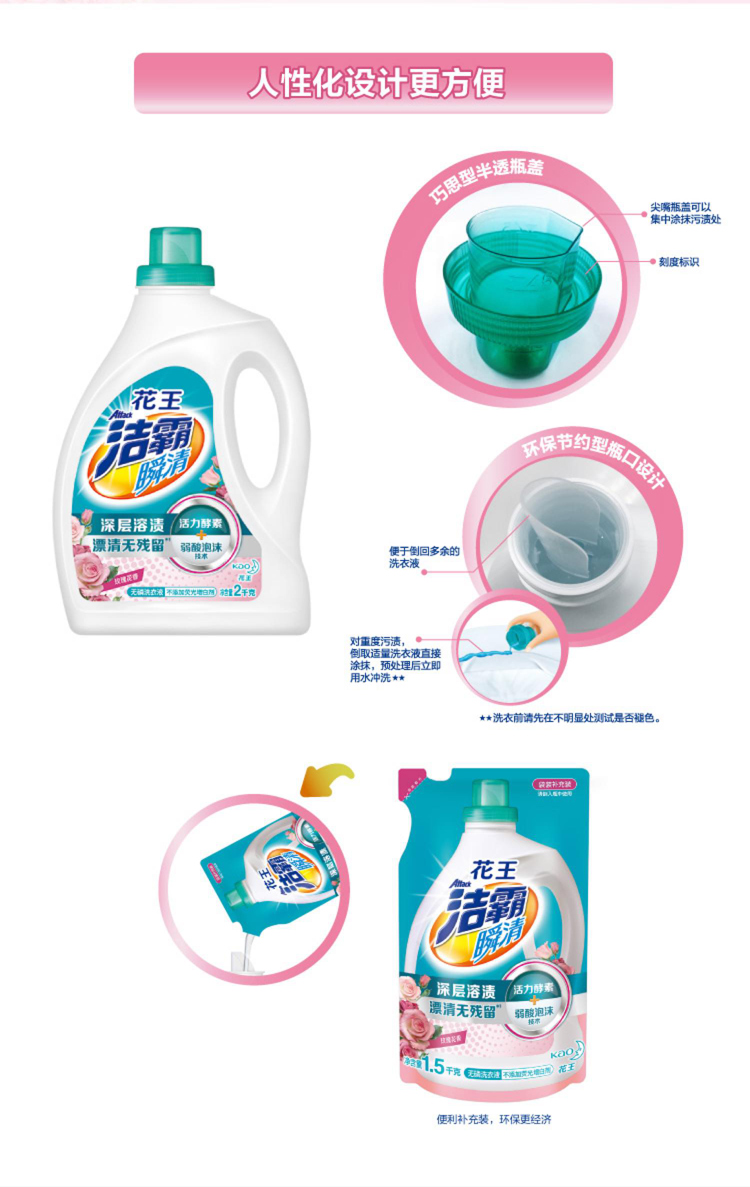花王洁霸 ATTACK 瞬清无磷洗衣液(玫瑰花香)14斤JOY特供箱装 2kg*2+1.5kg*2