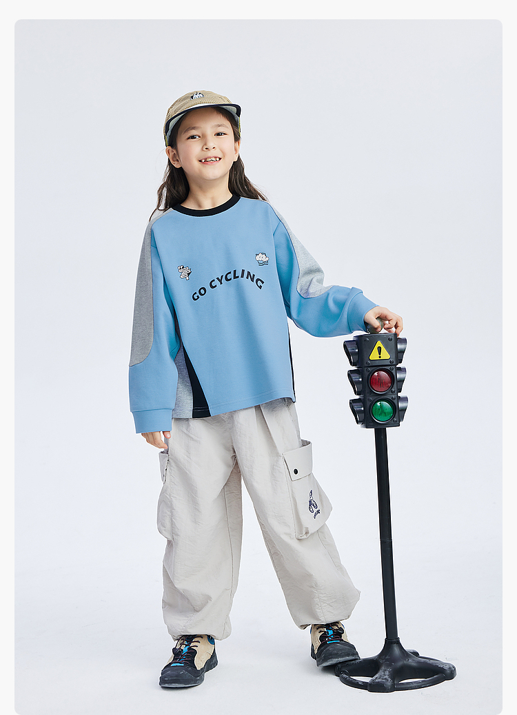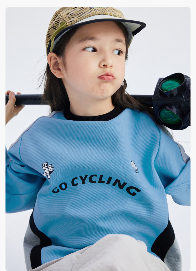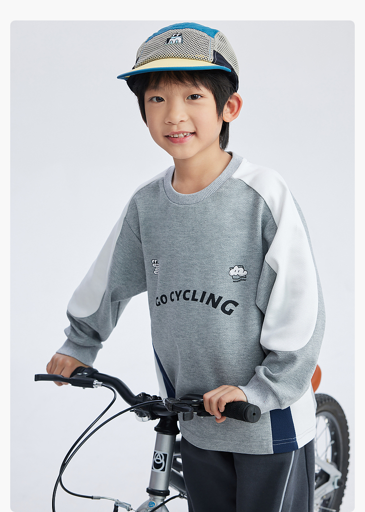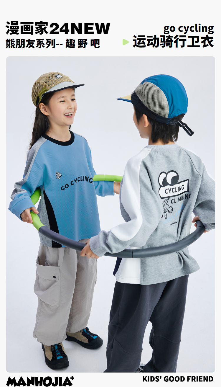 漫画家潮童装儿童拼色休闲运动骑行卫衣圆领套头上衣中大童2024春