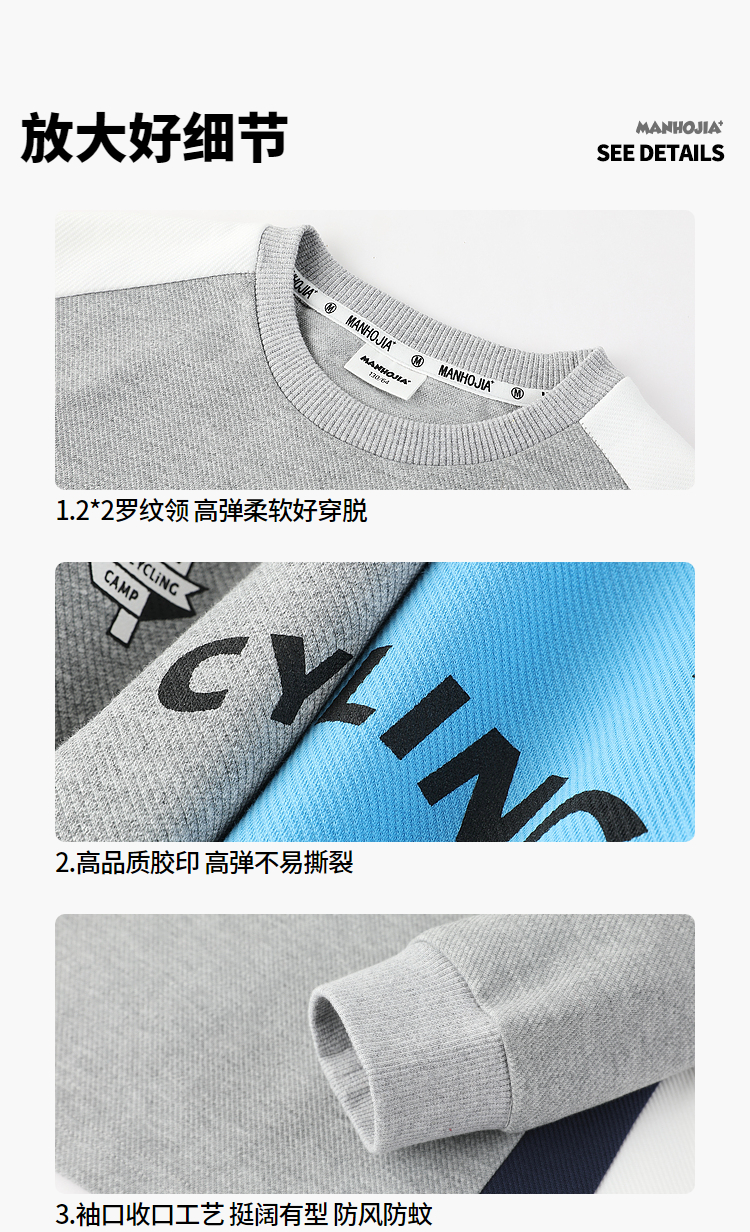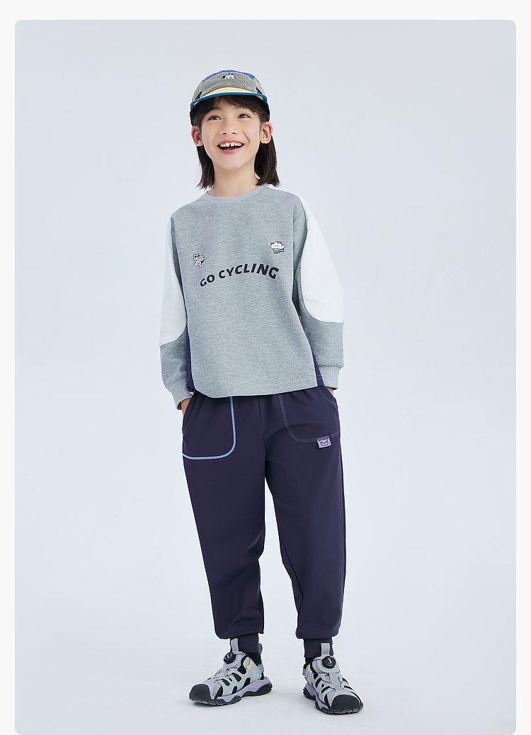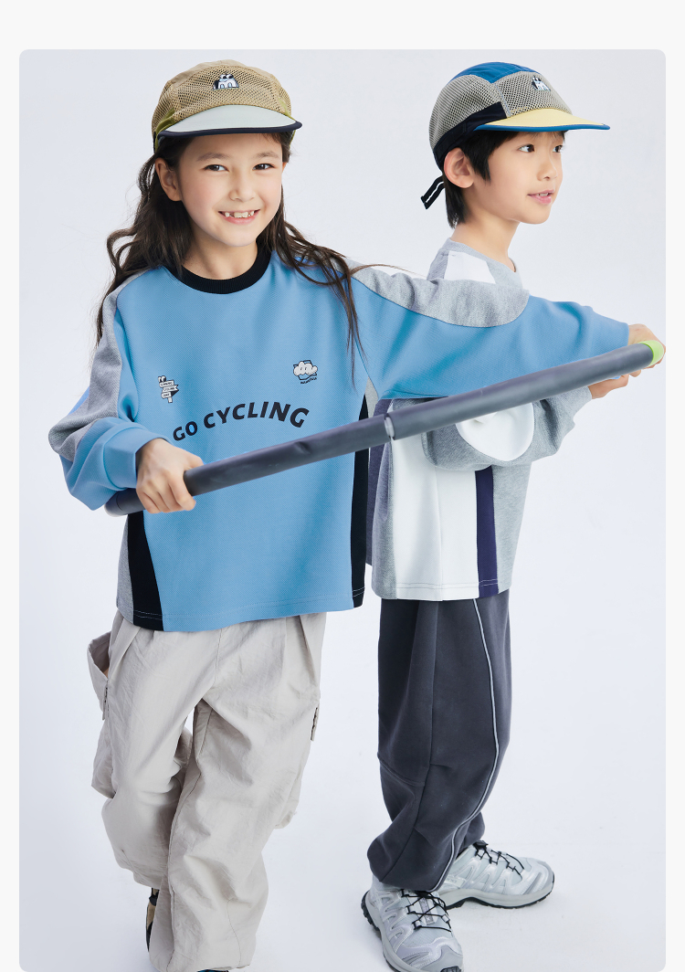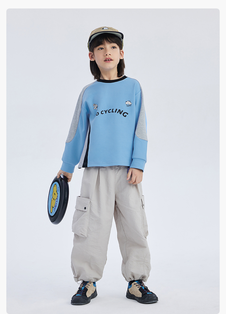 漫画家潮童装儿童拼色休闲运动骑行卫衣圆领套头上衣中大童2024春