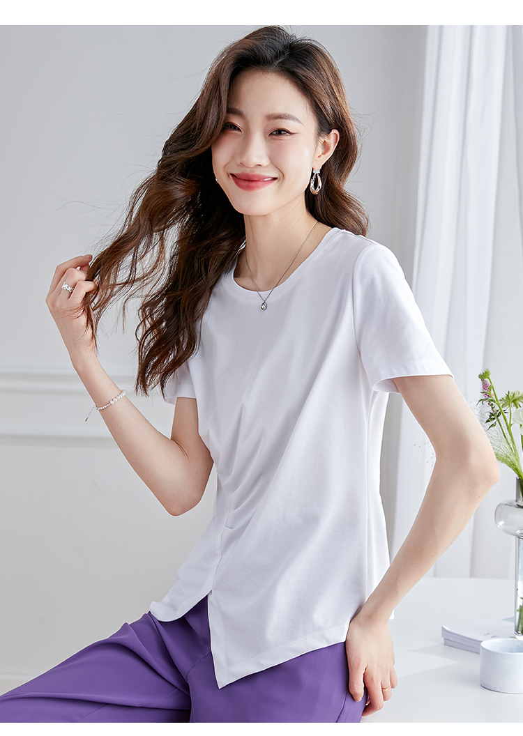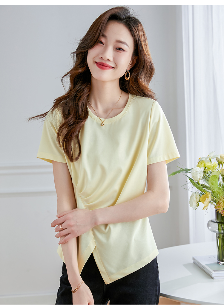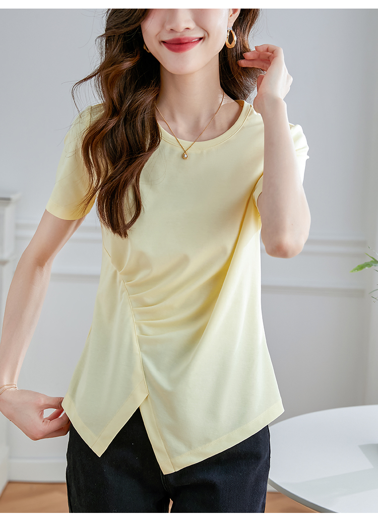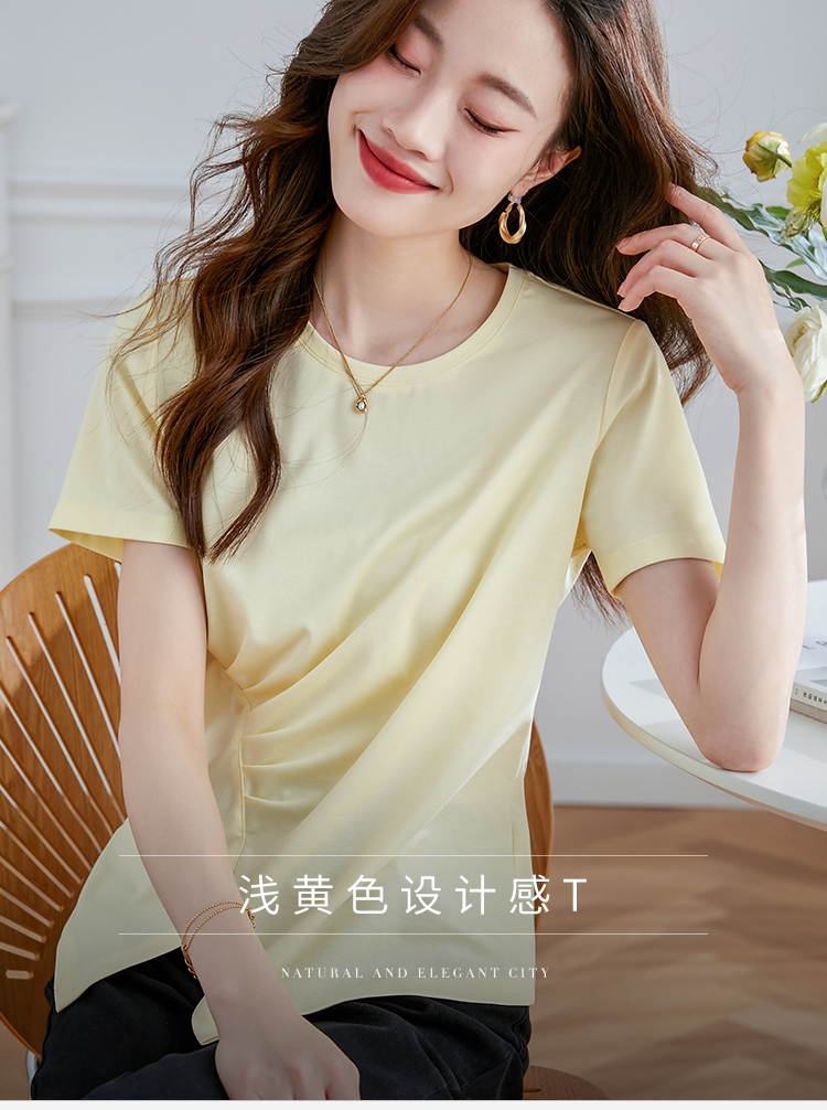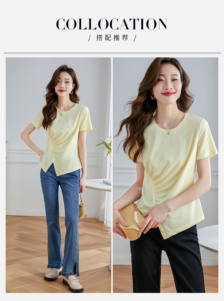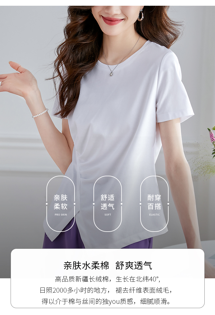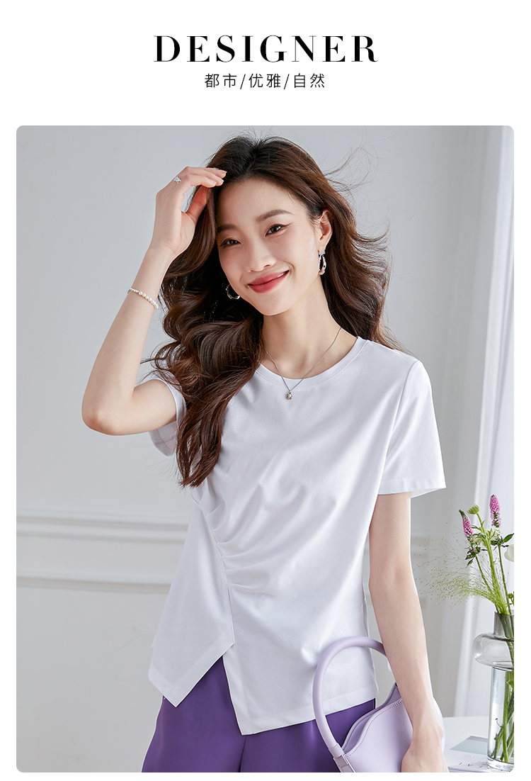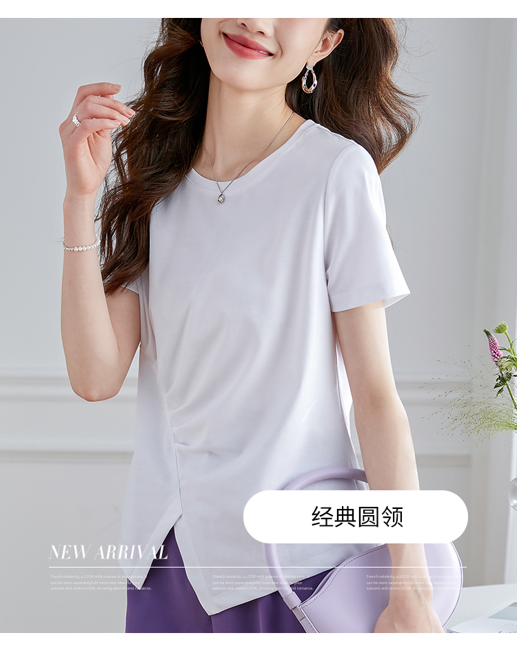【专属特价】熙世界不规则短袖T恤女夏2025年新款休闲纯色圆领设计感别致上衣