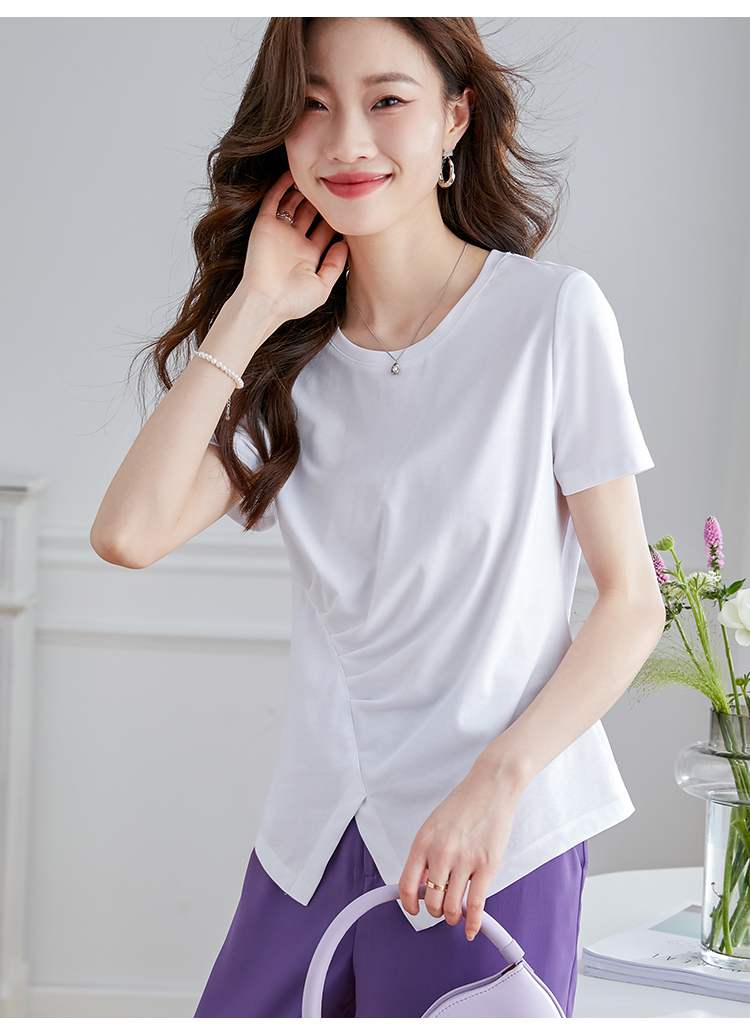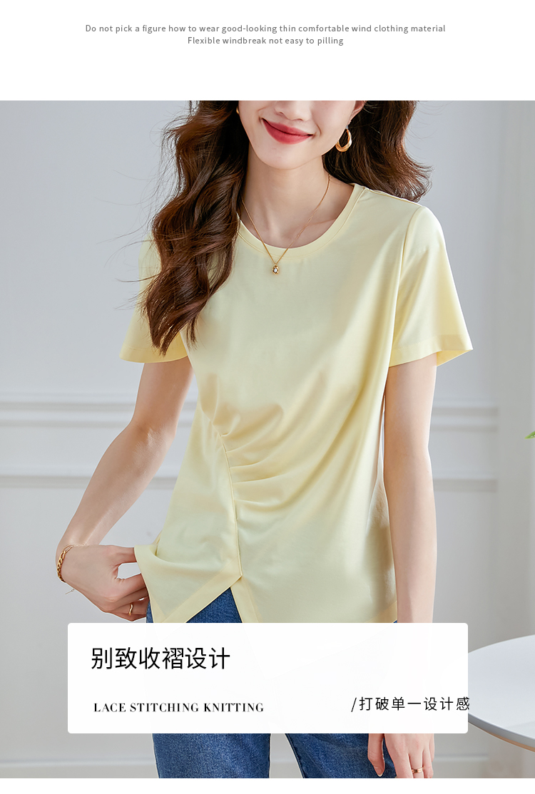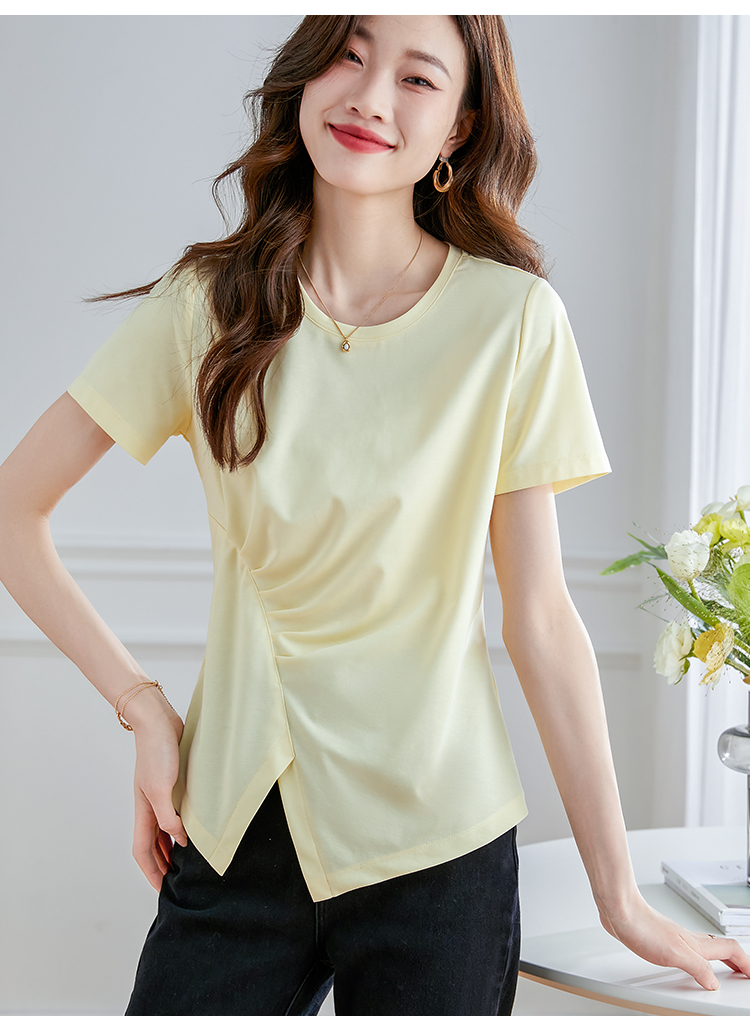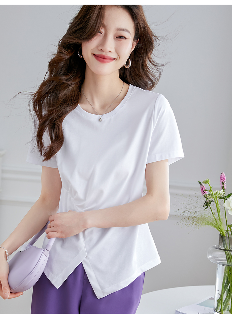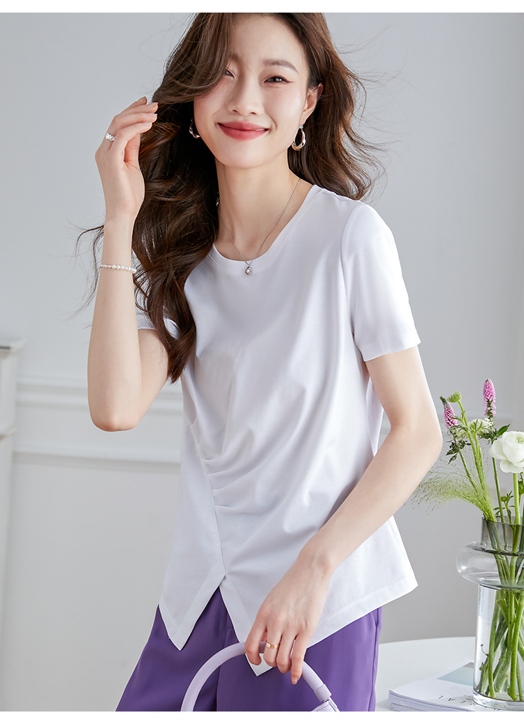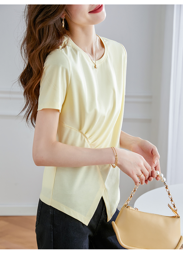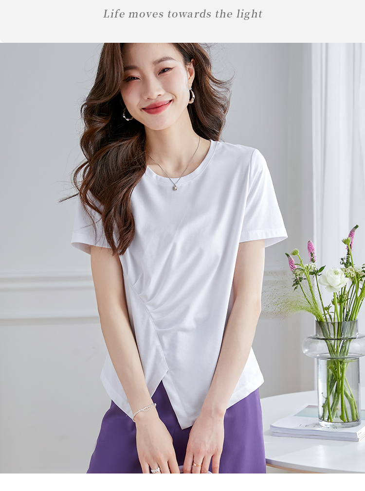 【专属特价】熙世界不规则短袖T恤女夏2025年新款休闲纯色圆领设计感别致上衣