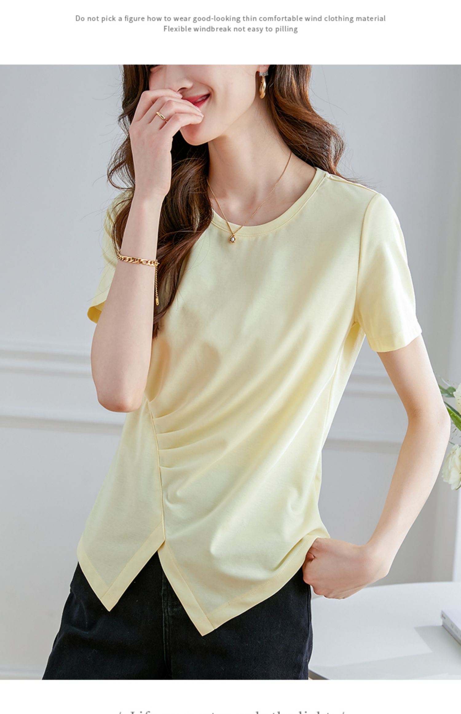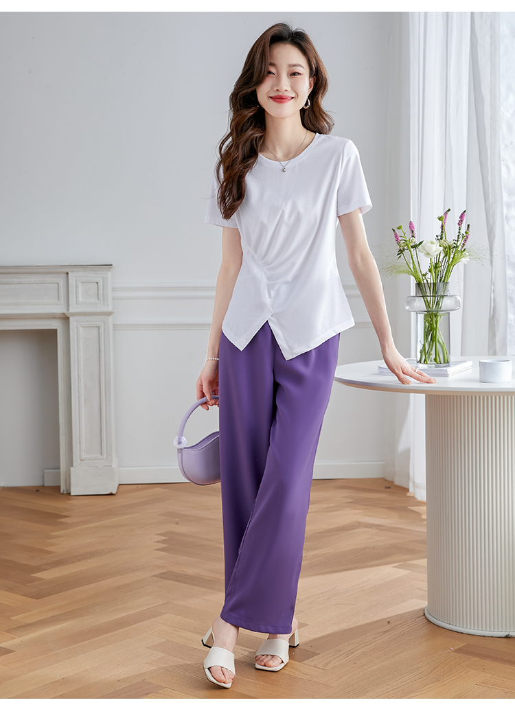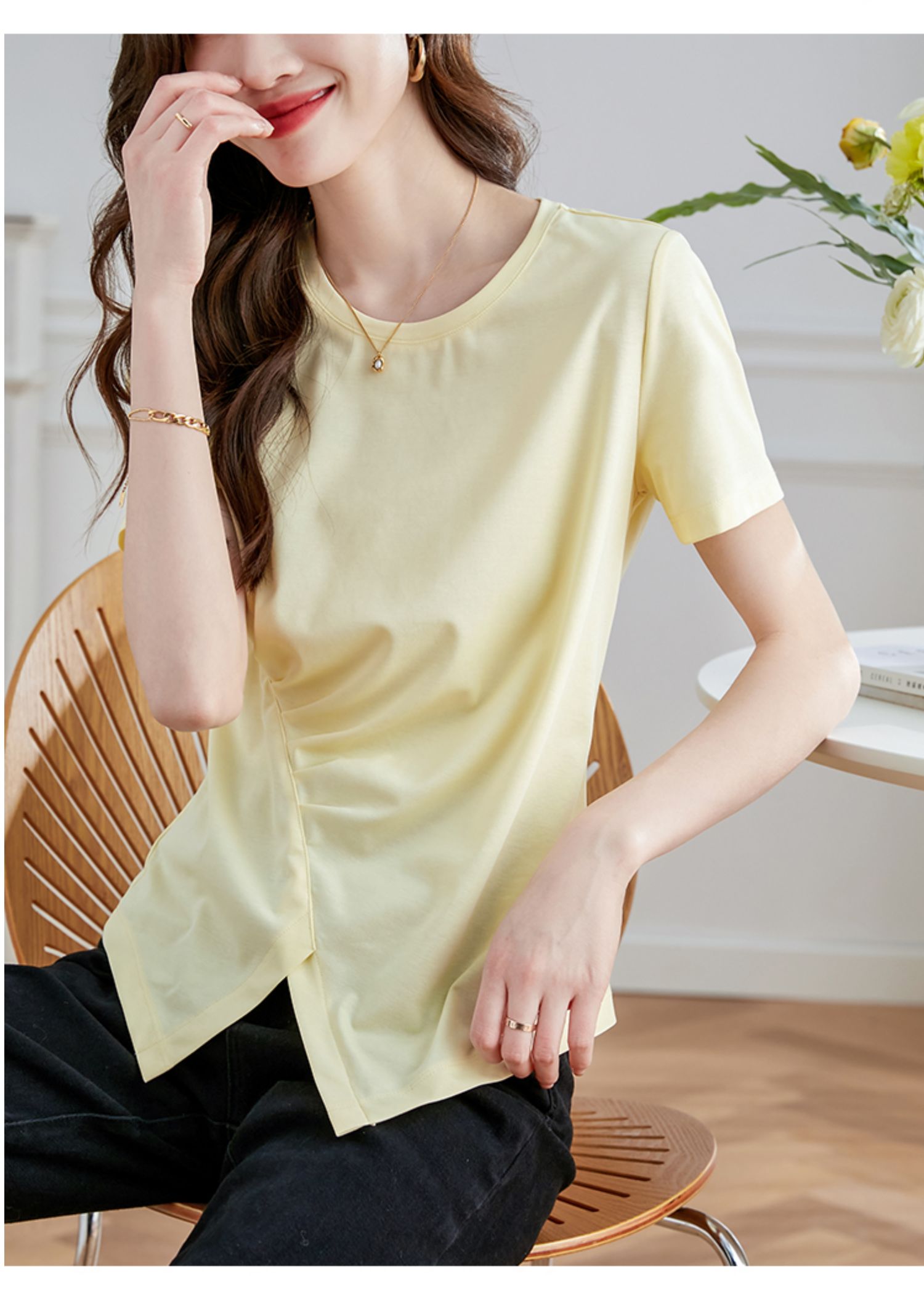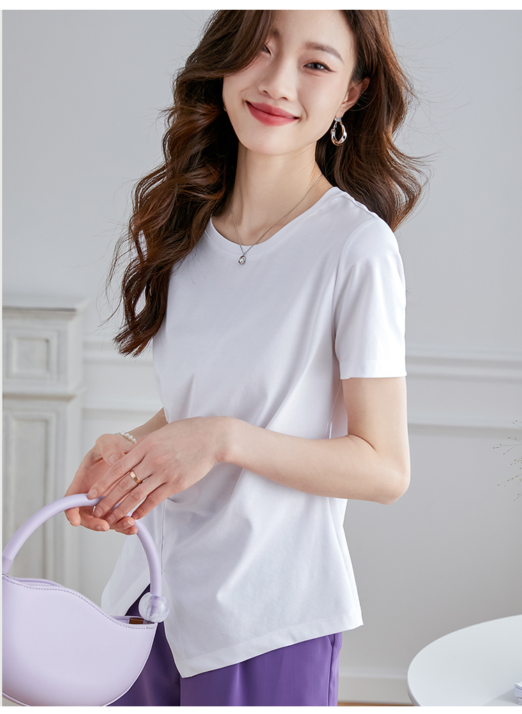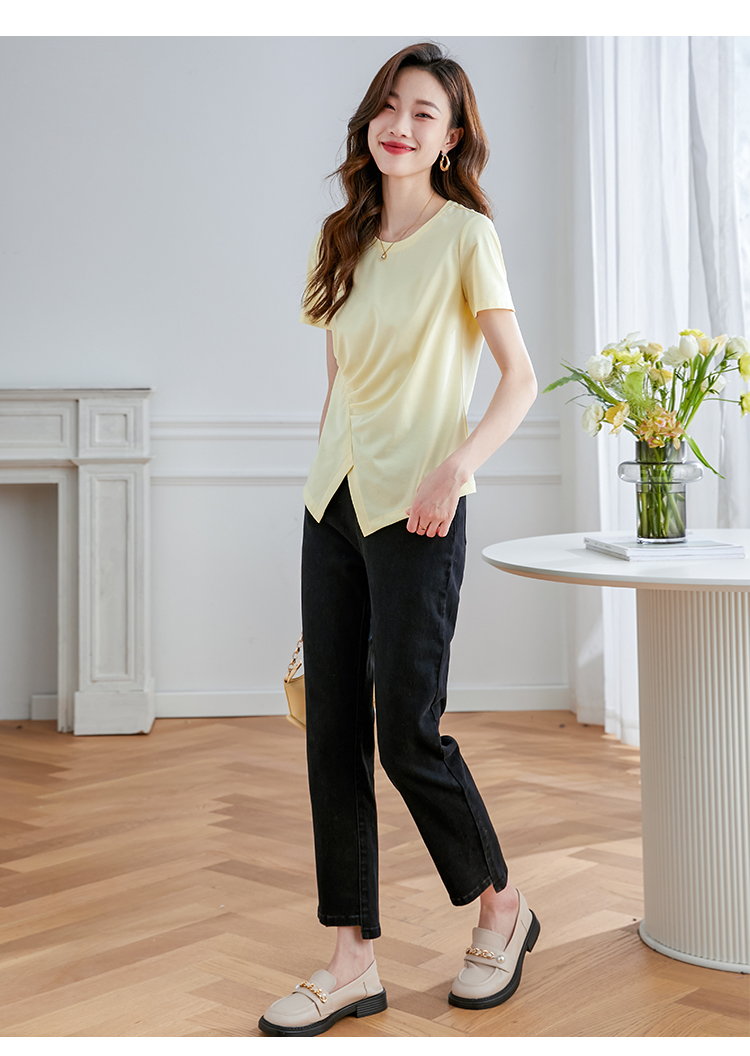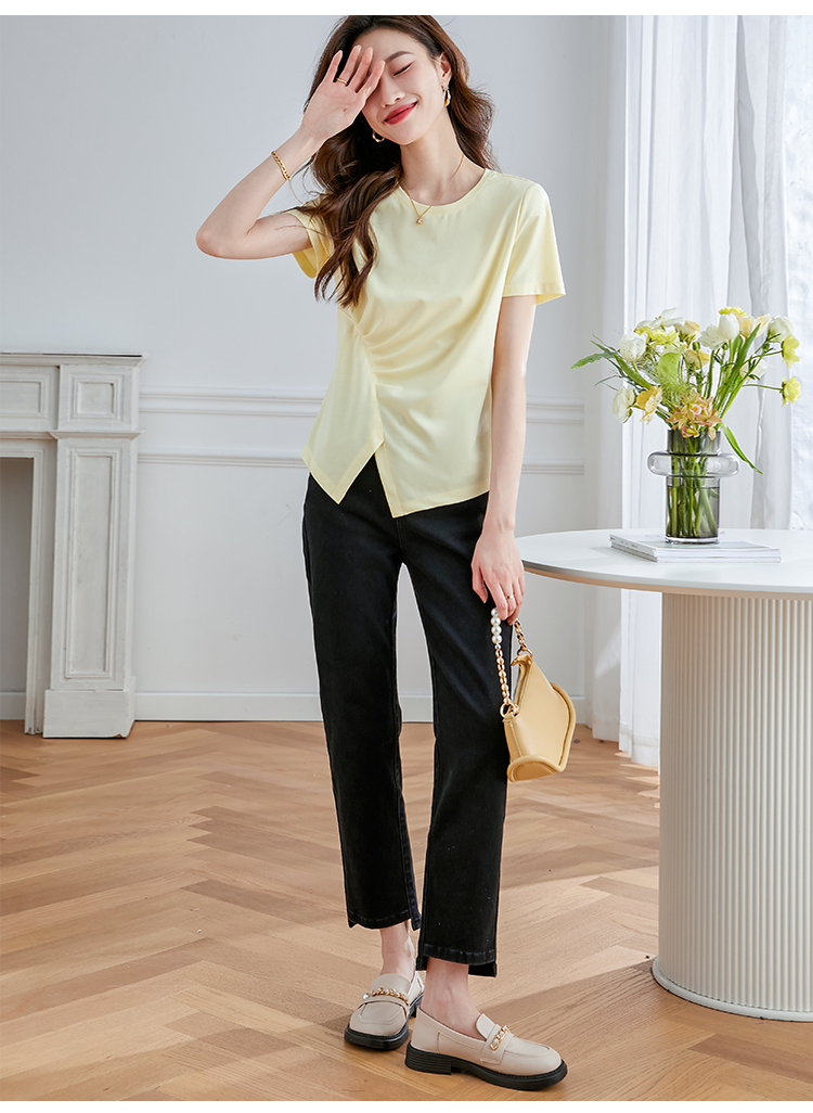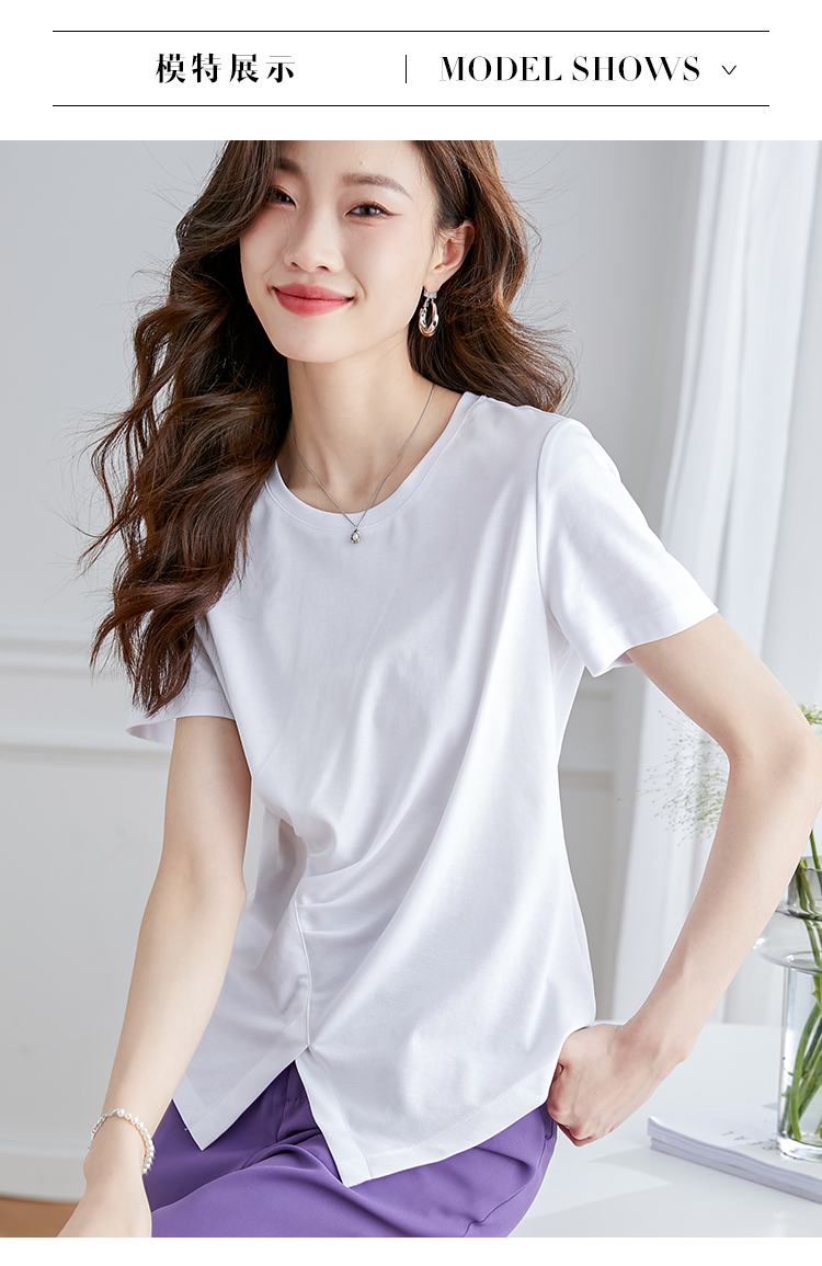 【专属特价】熙世界不规则短袖T恤女夏2025年新款休闲纯色圆领设计感别致上衣