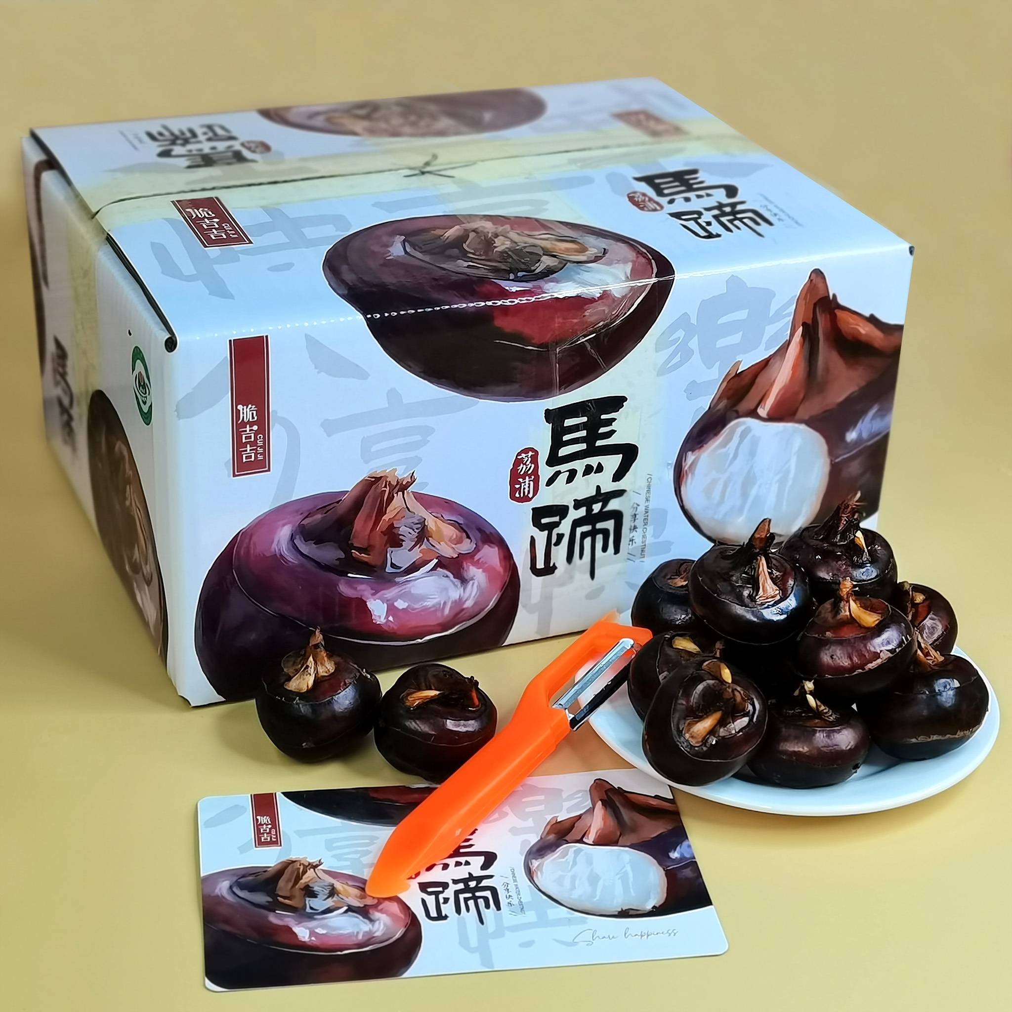 马蹄,来自广西荔浦,其皮薄肉嫩,水分充足,清甜无渣,爽脆可口既做蔬菜也可做水果。它营养丰富,含有蛋白质、维生素C,还有钙、磷、铁、质、胡萝卜素等元素,有温中益气、清热开胃、消食化痰之功效