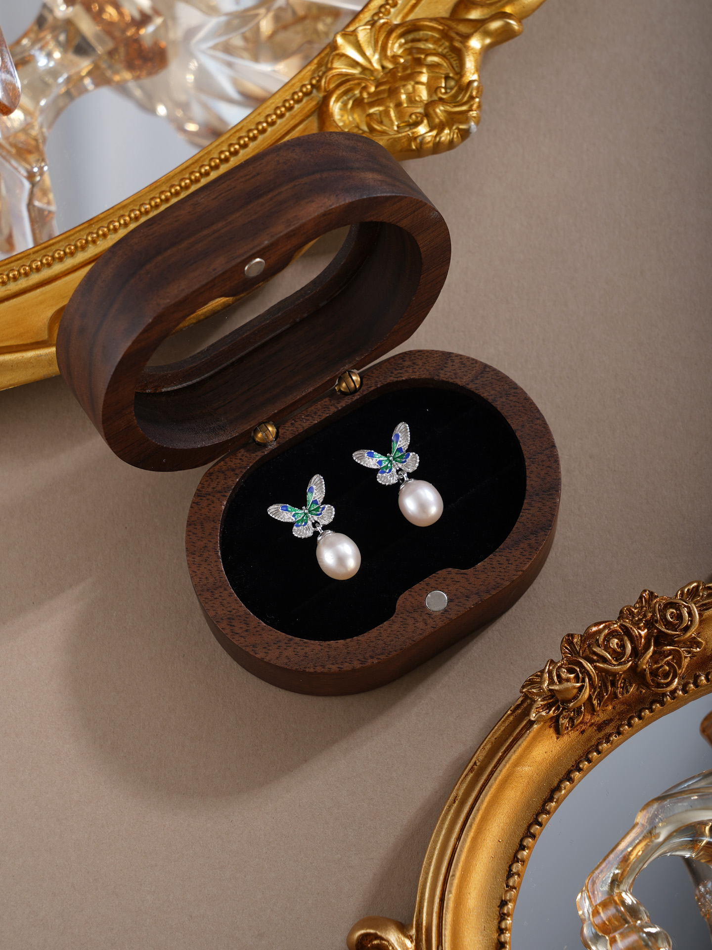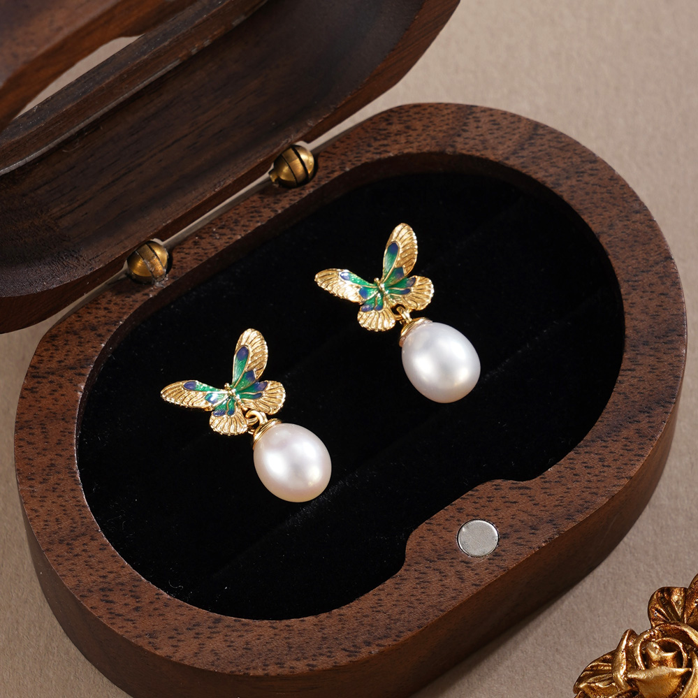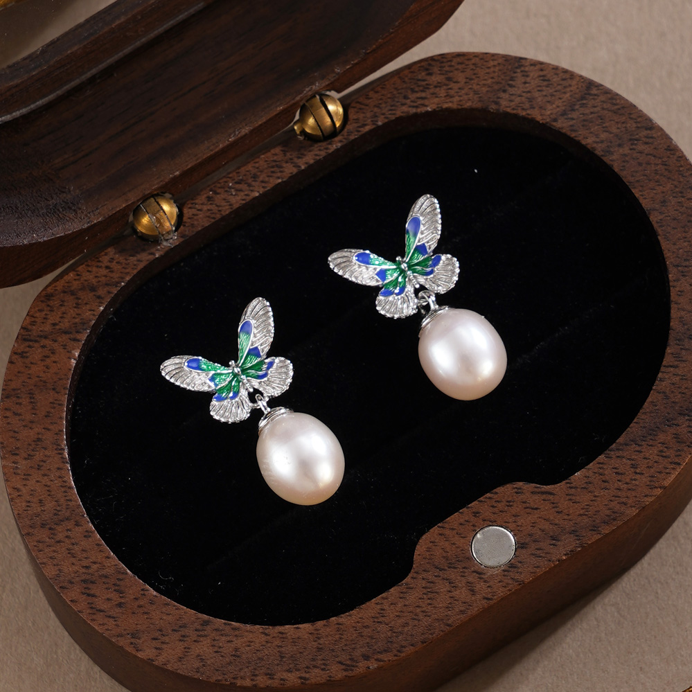 子佩集【蝴蝶觉醒】银S925珍珠惜王妃耳钉【E4620】双色蝴蝶2602