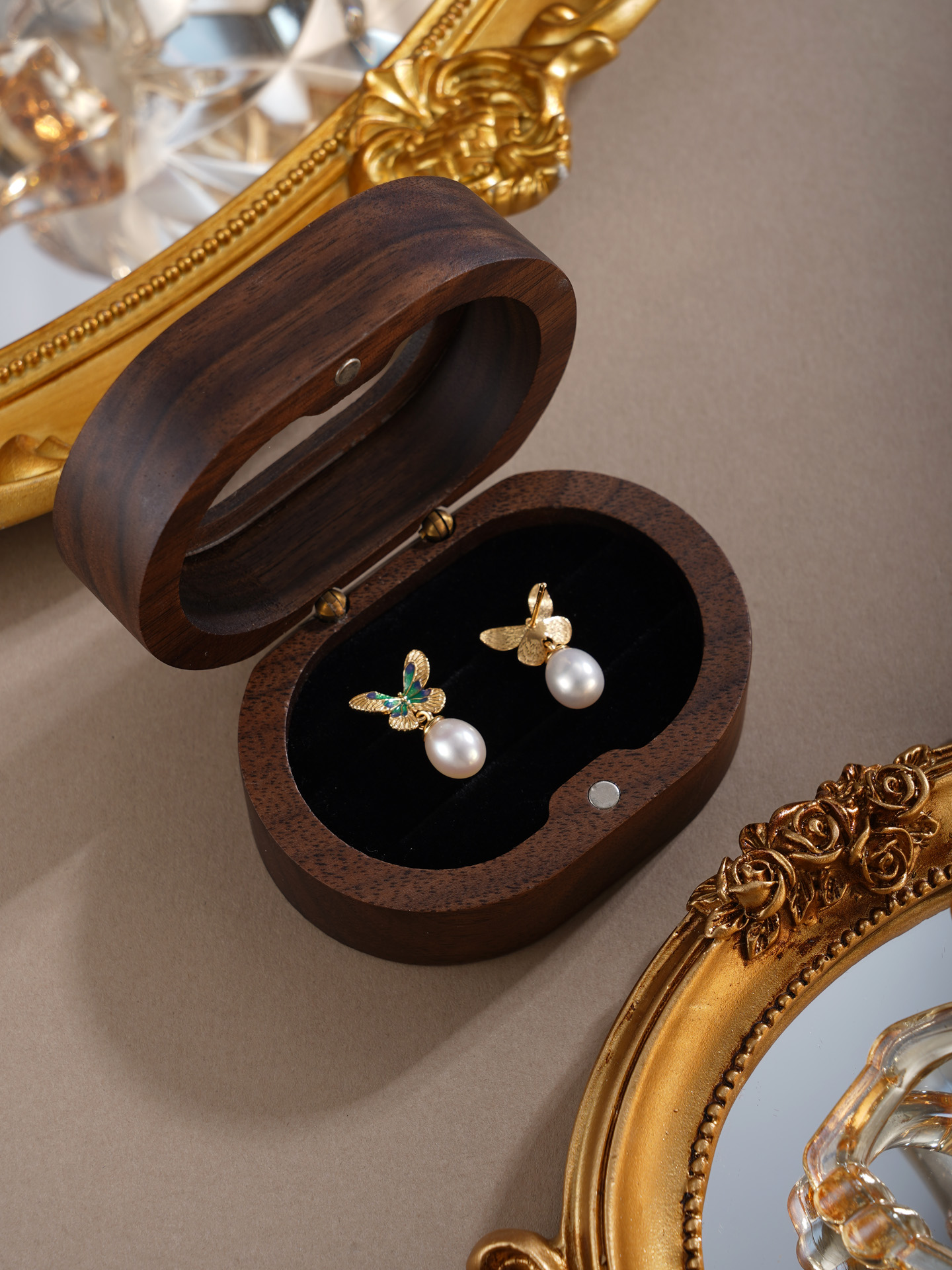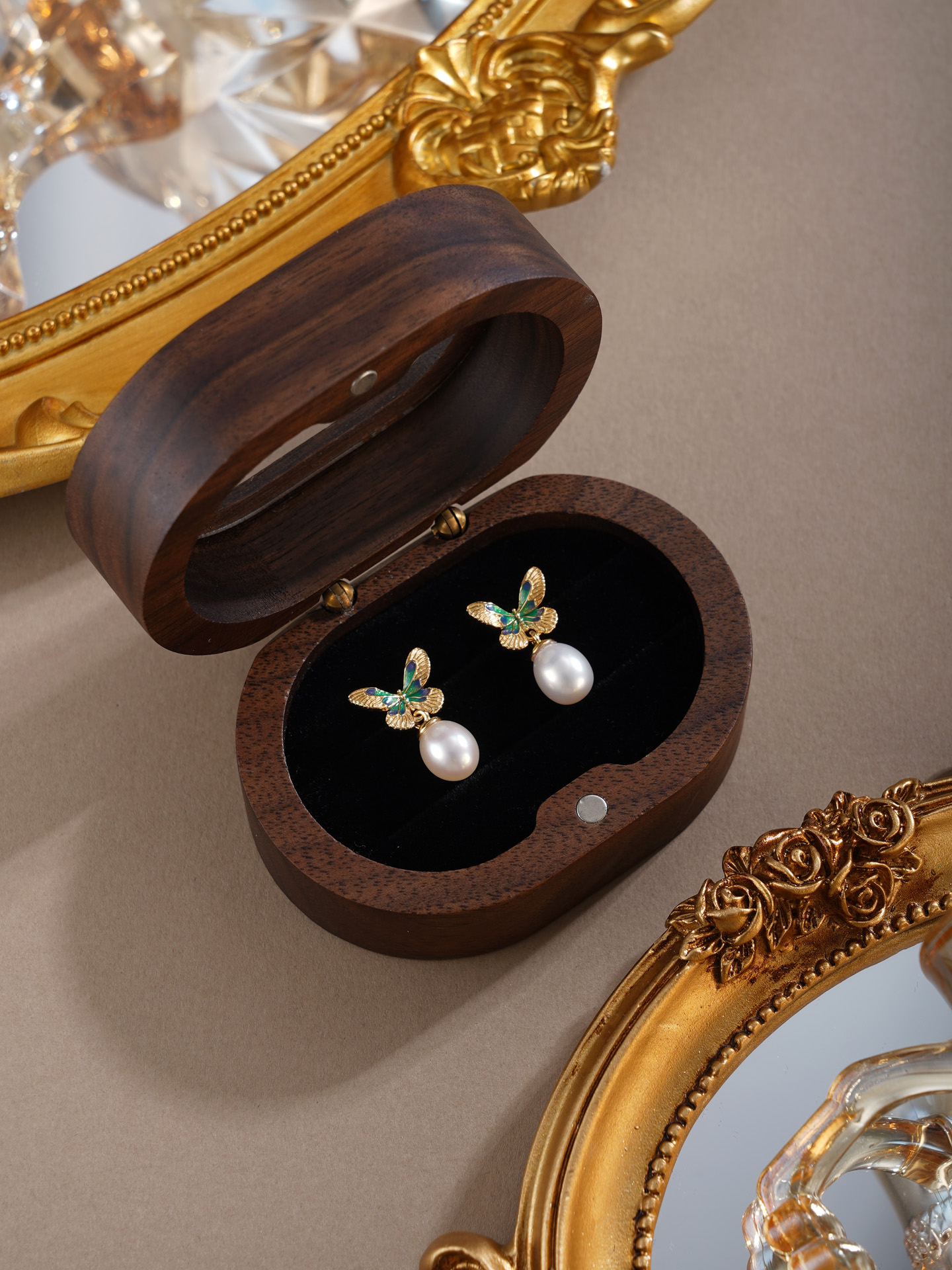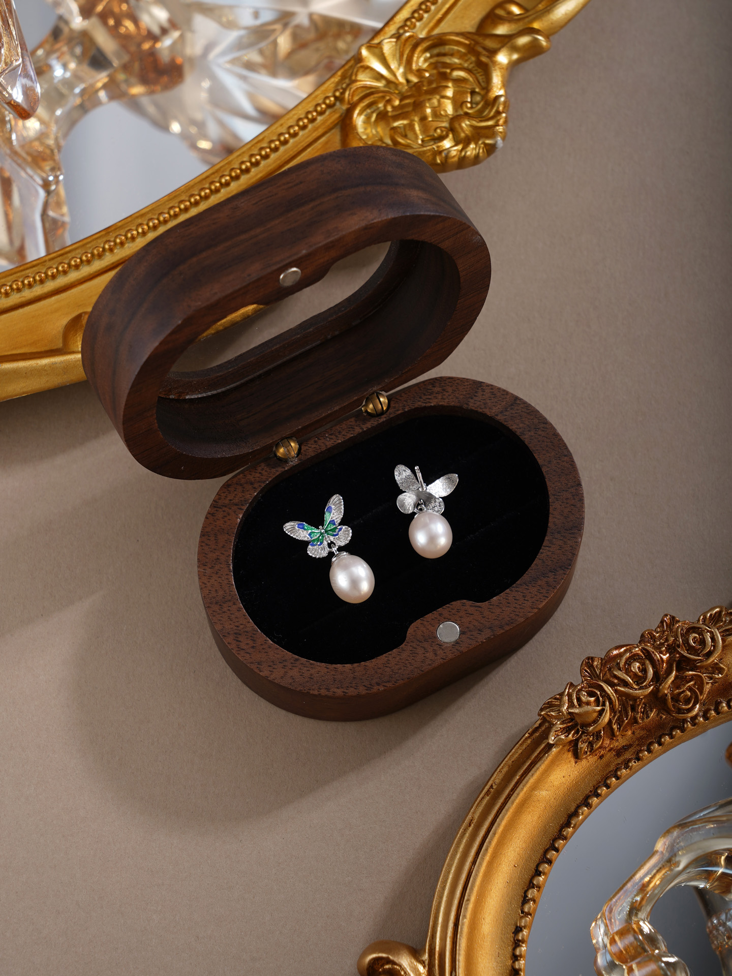 子佩集【蝴蝶觉醒】银S925珍珠惜王妃耳钉【E4620】双色蝴蝶2602