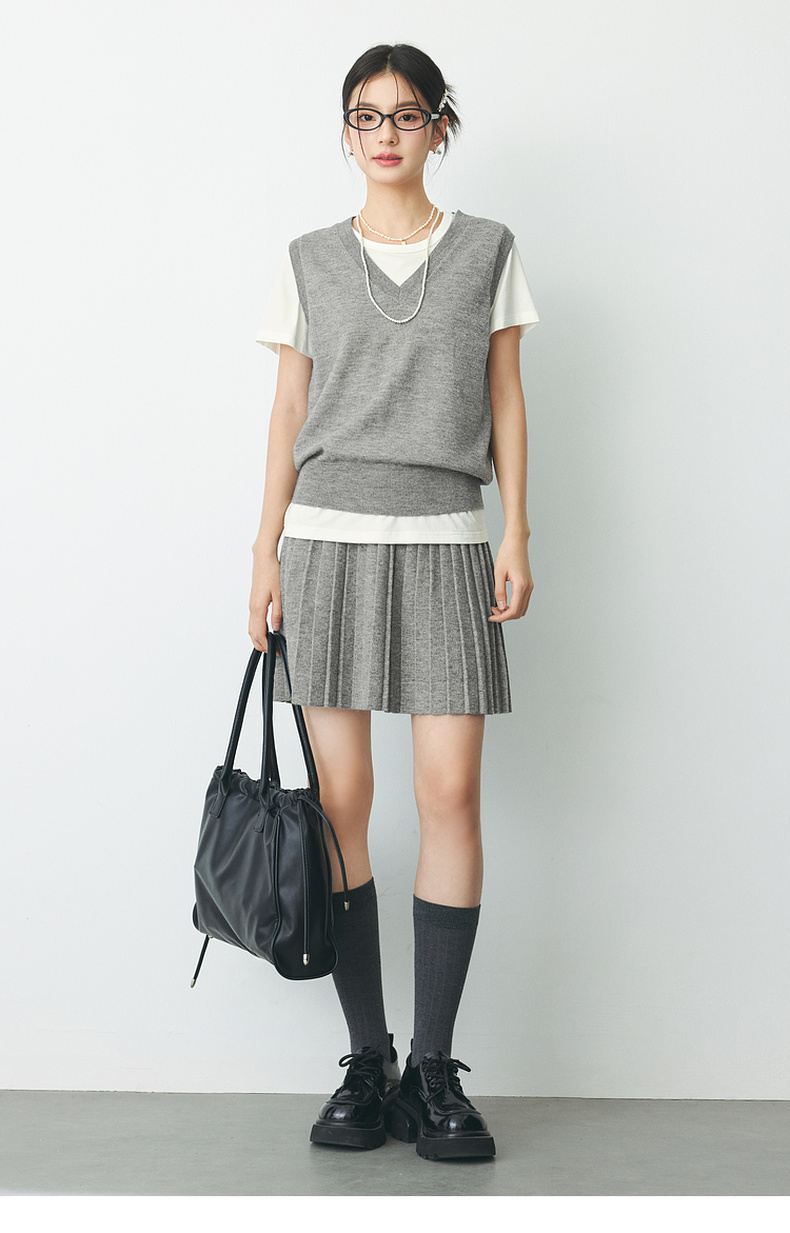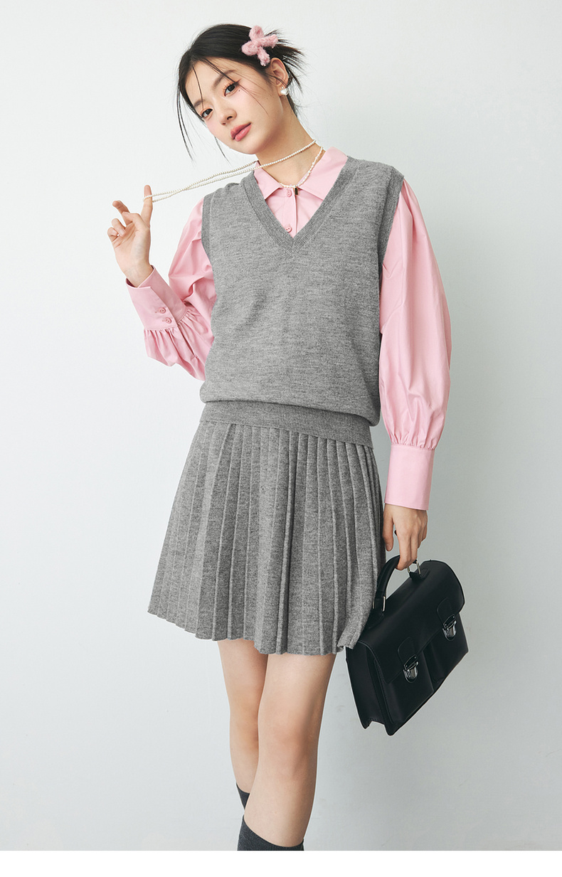 【严选】诗凡黎春基础百搭V领套头背心SF2330061