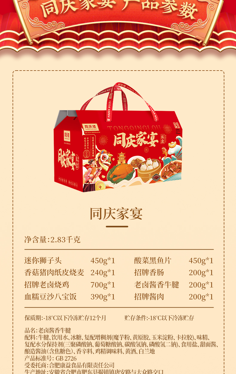 同庆楼 同庆家宴礼盒2.83kg 酸菜鱼片烧鸡腊肠酱牛肉名厨菜组合装 酒店级美味 新春佳节礼盒 48小时发货