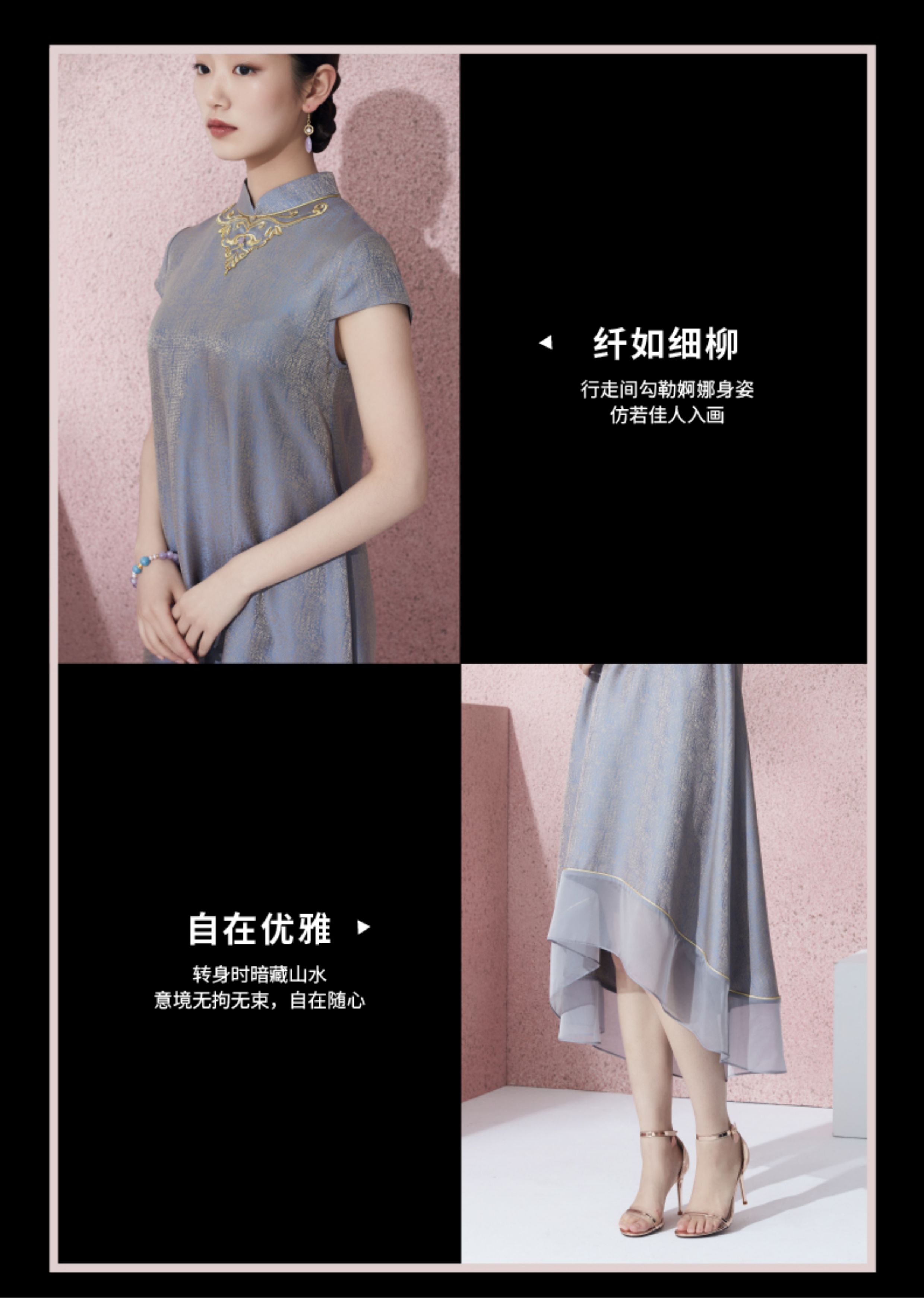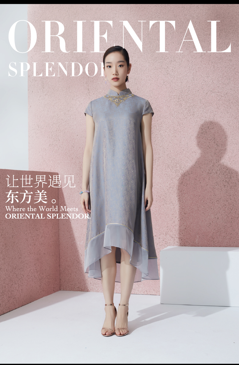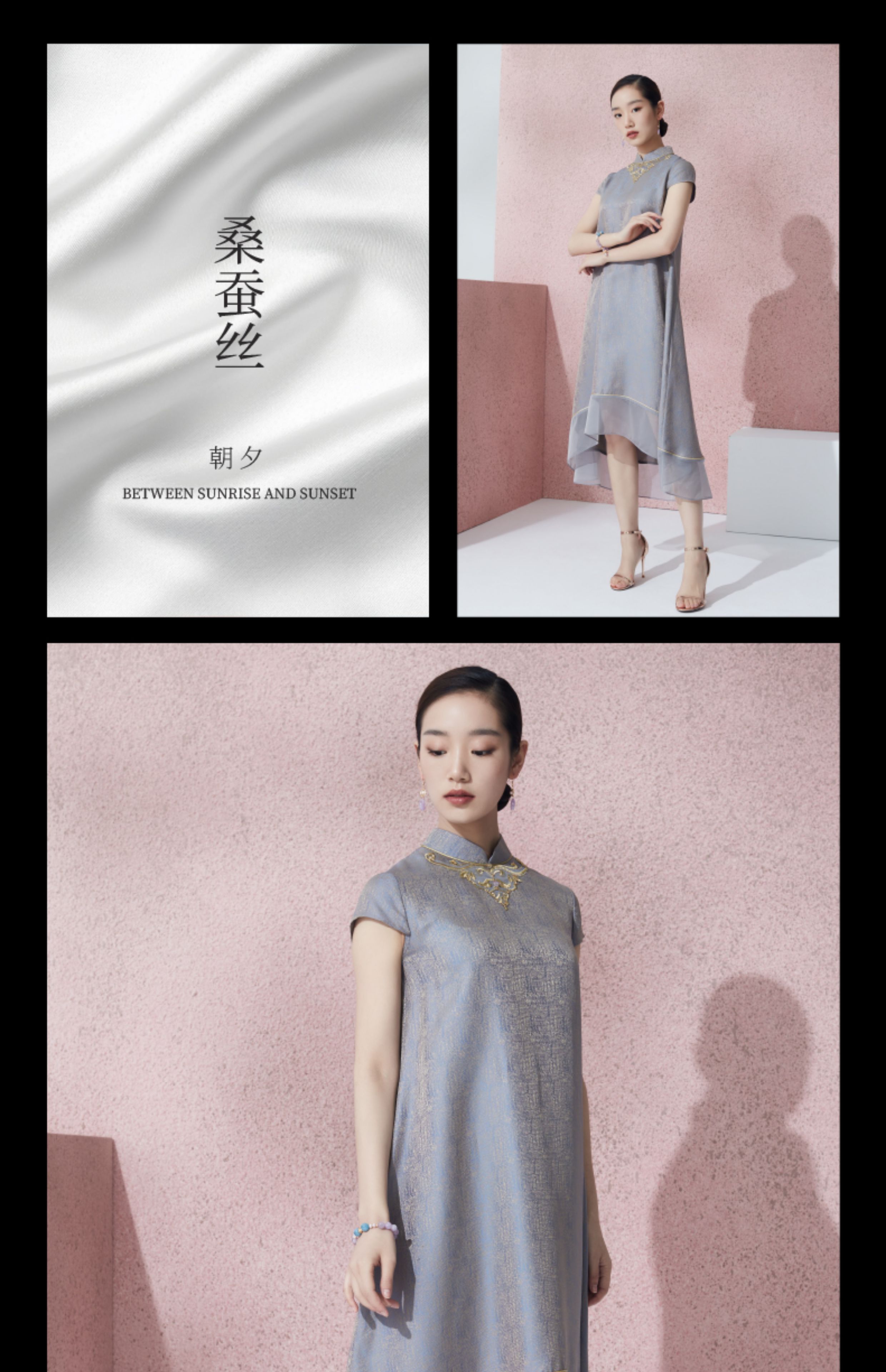 吉祥衣家新中式国风夏款桑蚕丝高端气质修身显瘦女装朝夕连衣裙