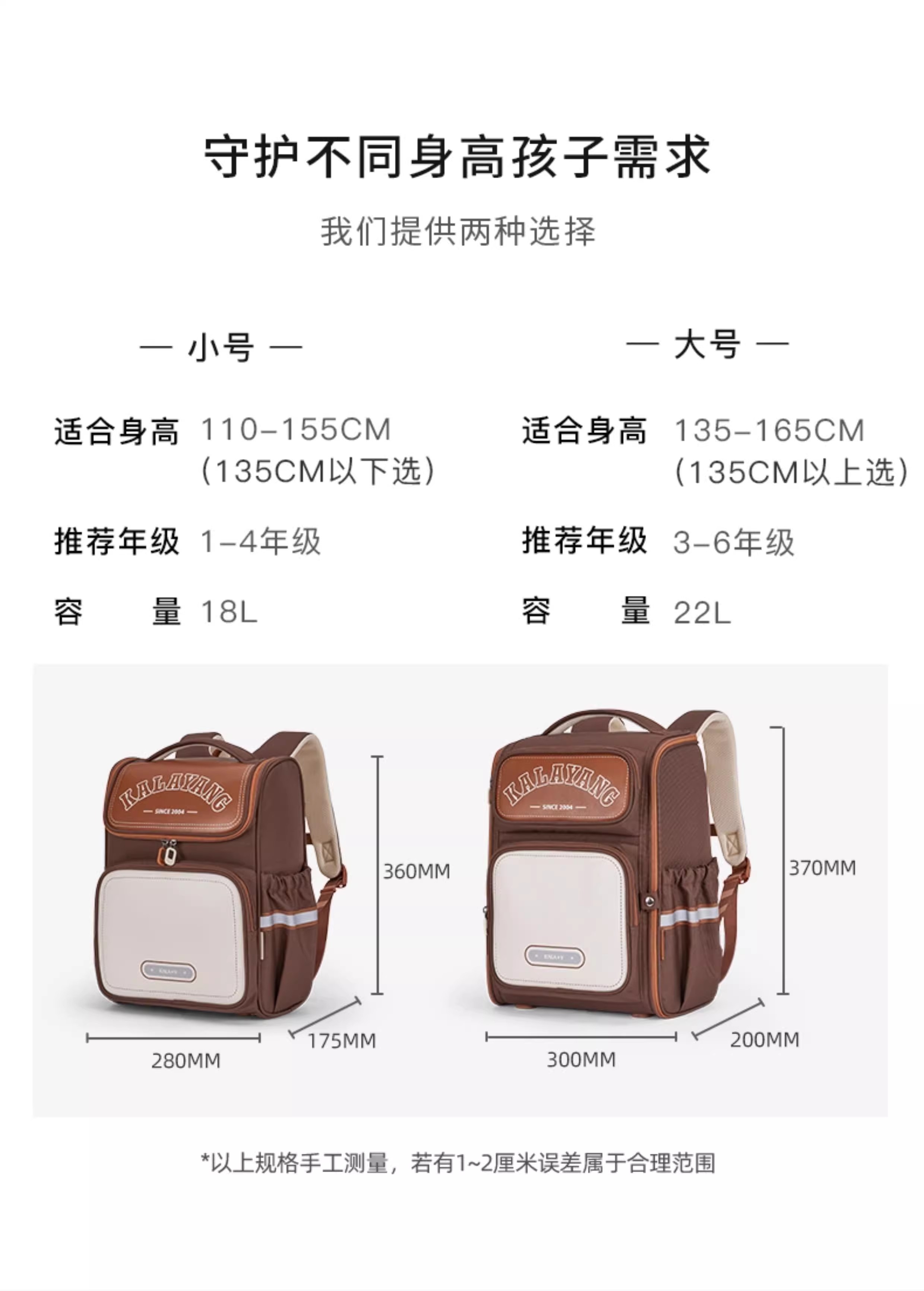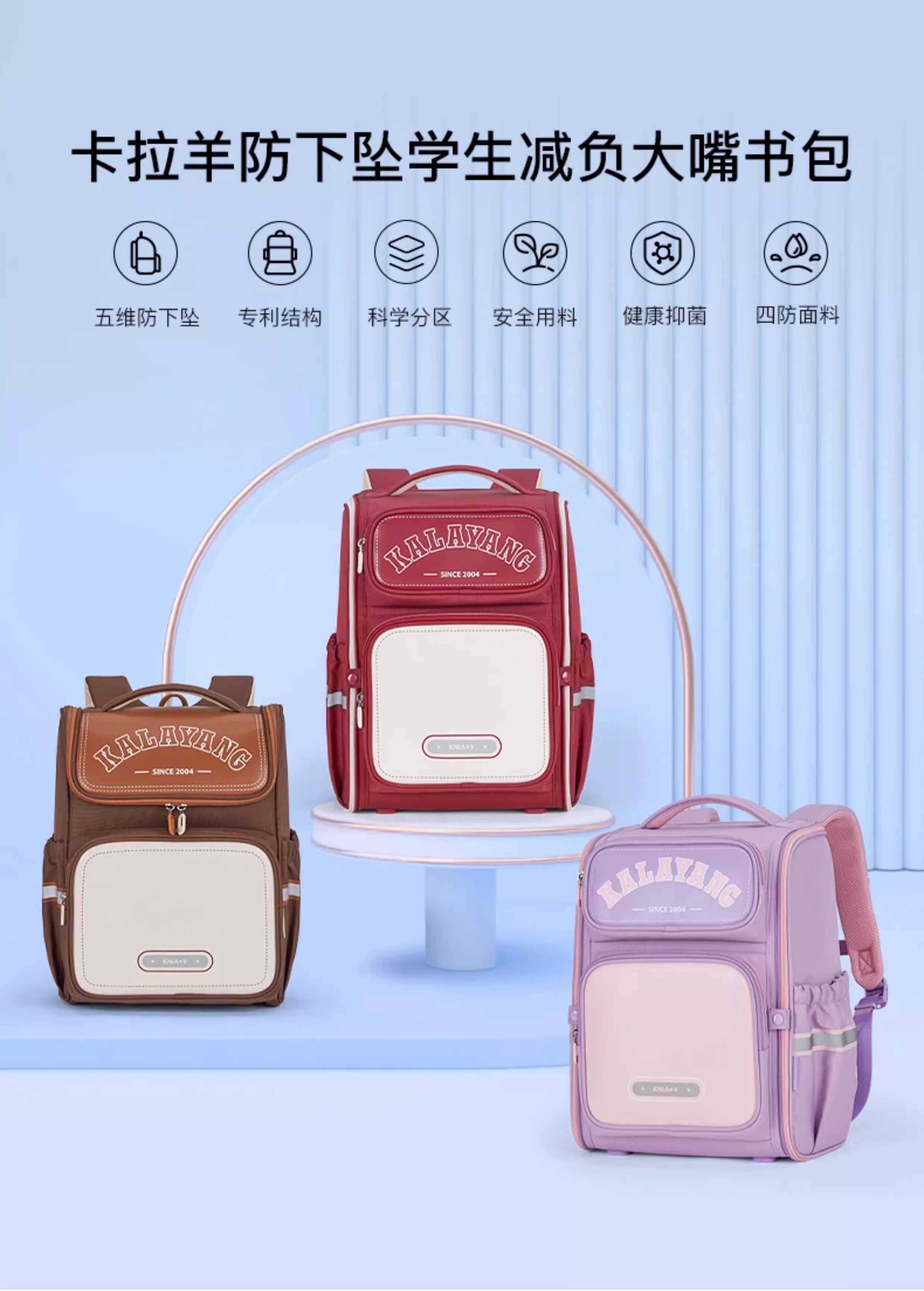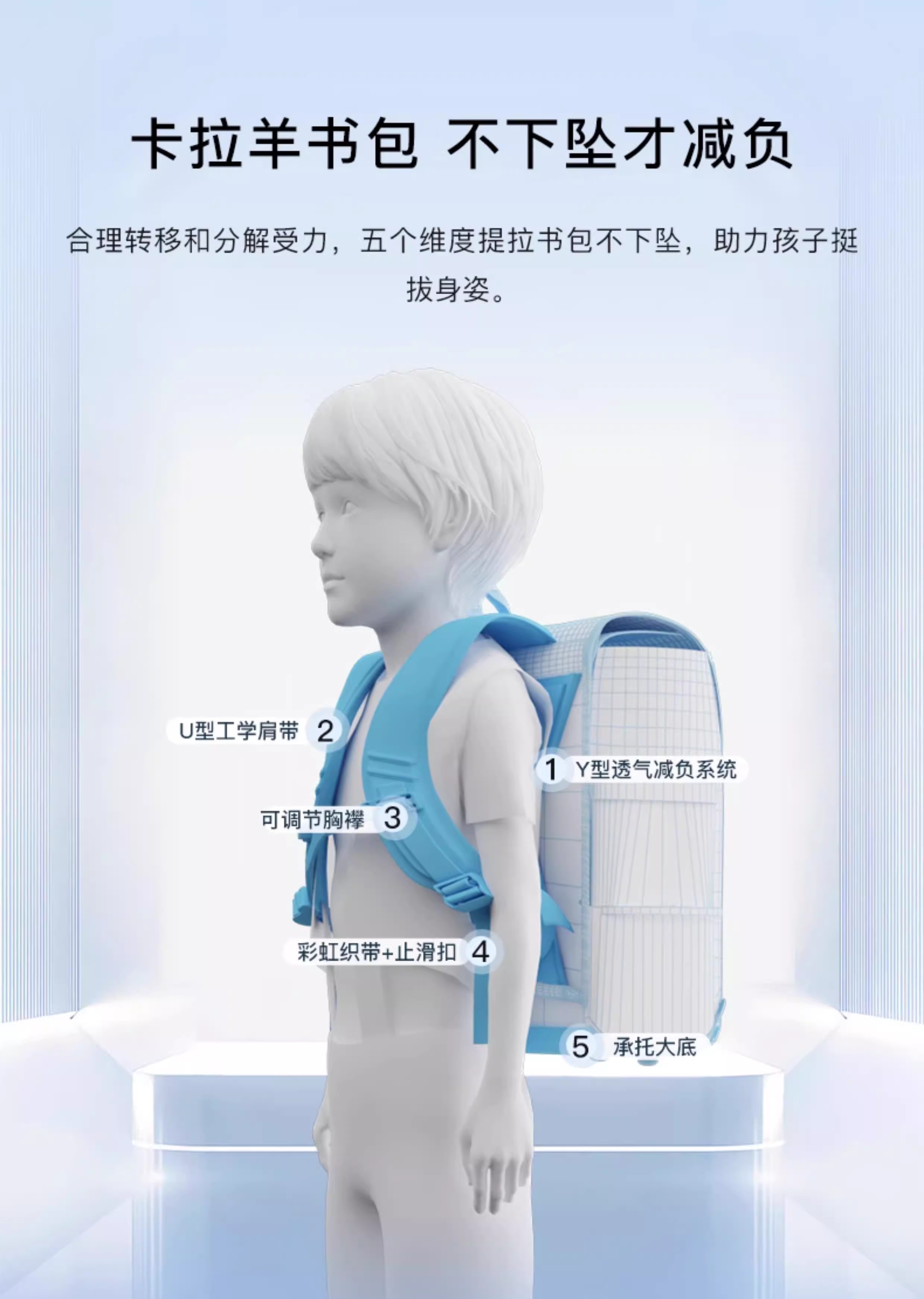 【卡拉羊书包丨适合3-6年级】五维减负设计,助力挺拔身姿!好清洗易收纳,加宽肩带,背心式贴合人体颈部!