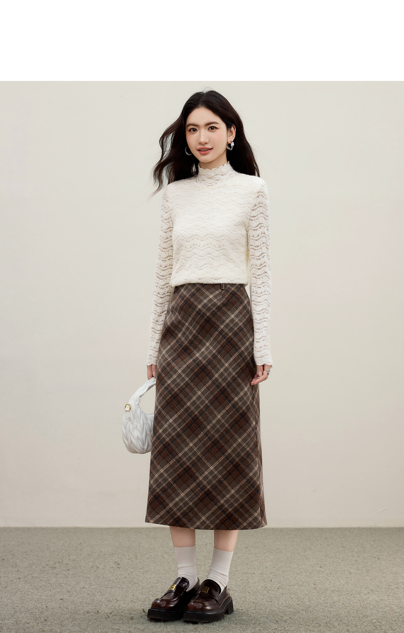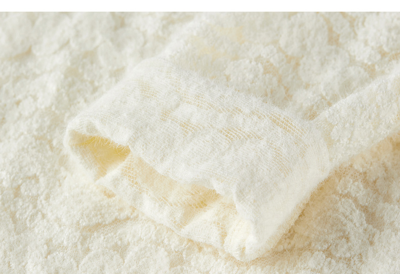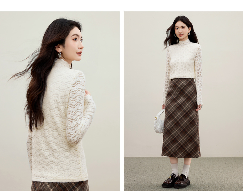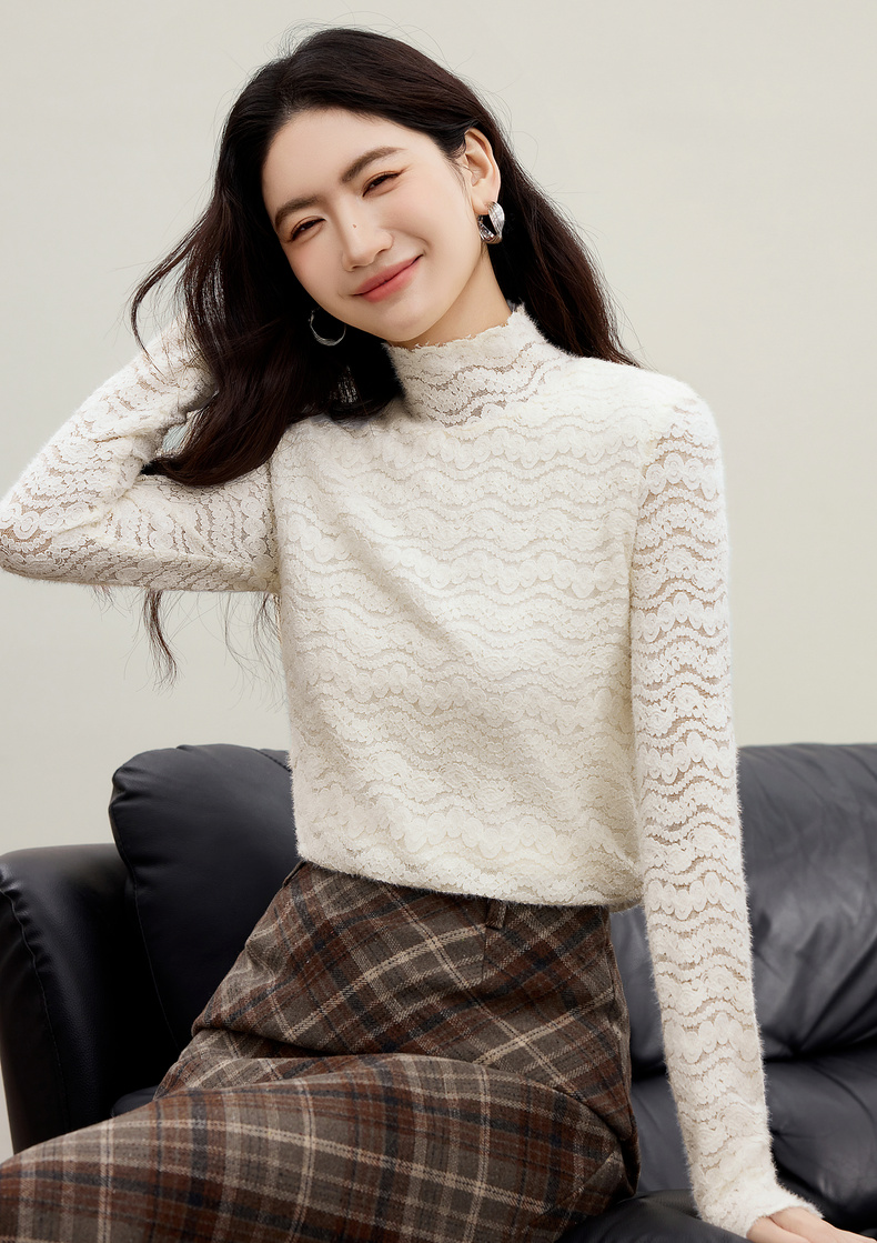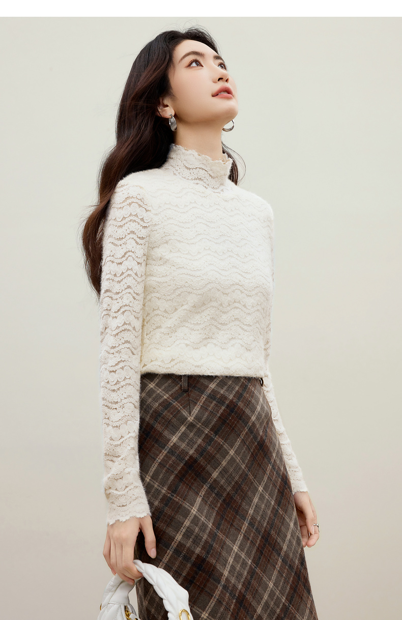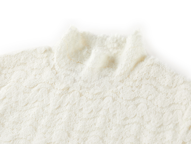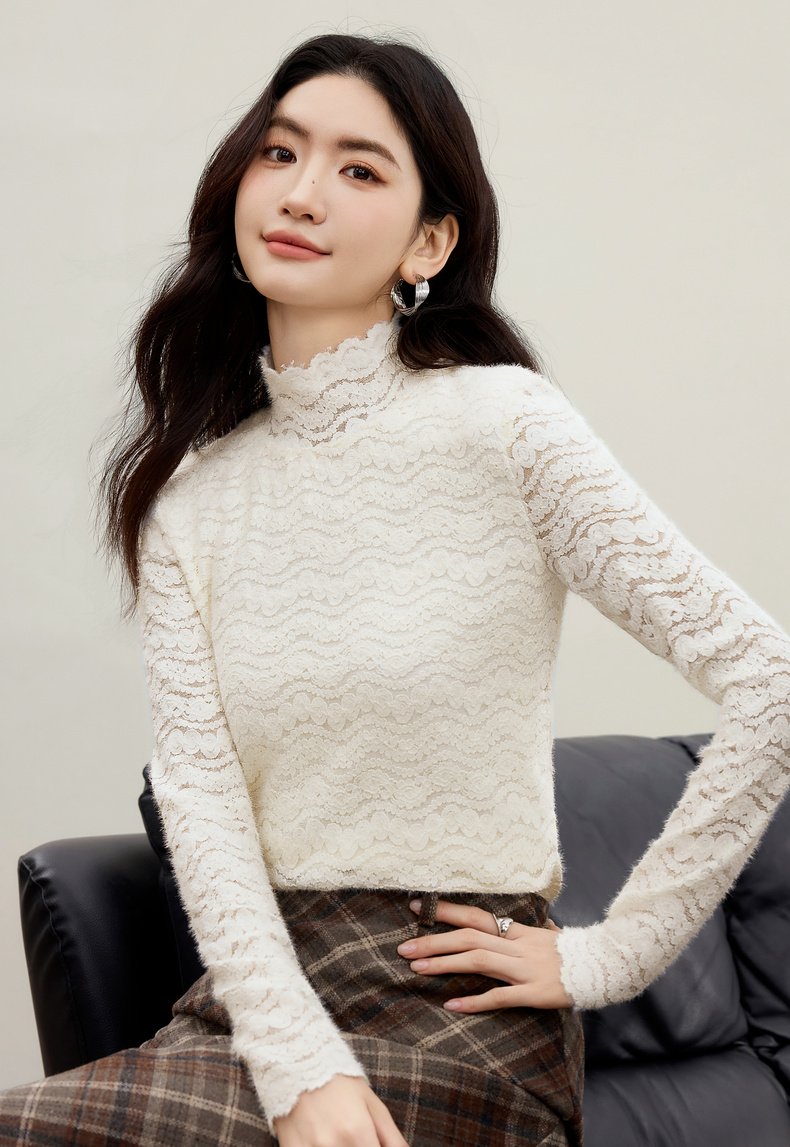 【内购】【镂空肌理】通勤波浪边半高领微弹磨毛不走光外穿内搭长袖蕾丝衫-153SA3129