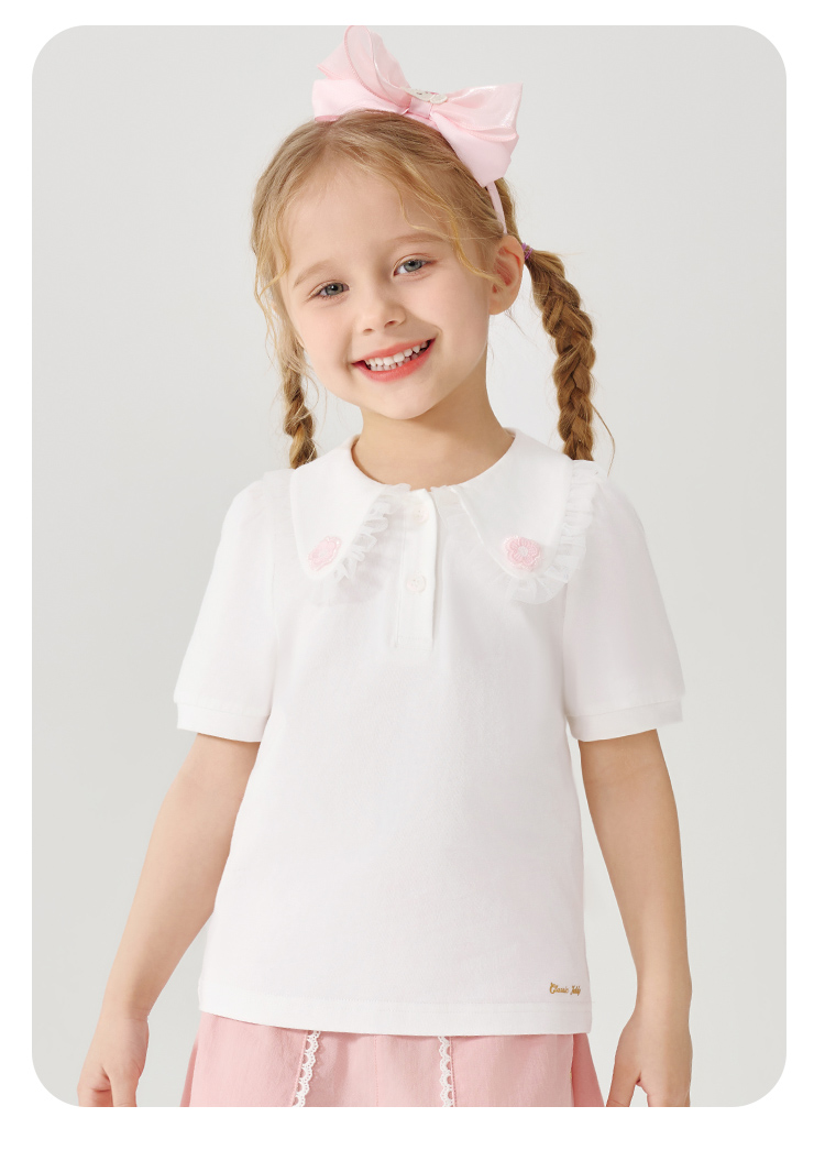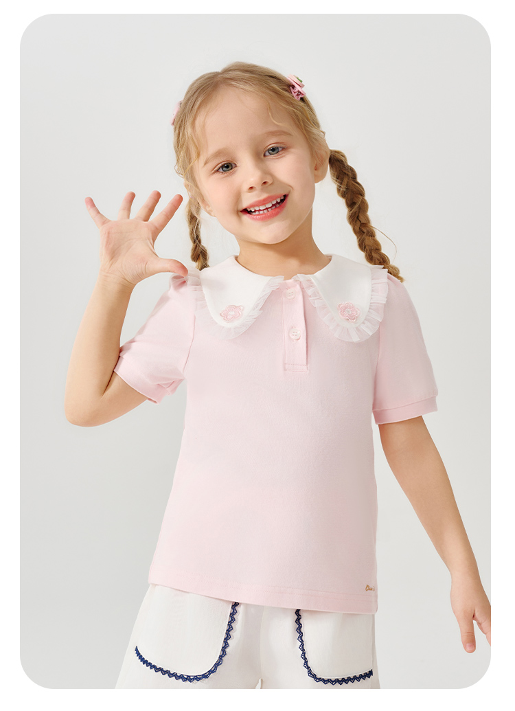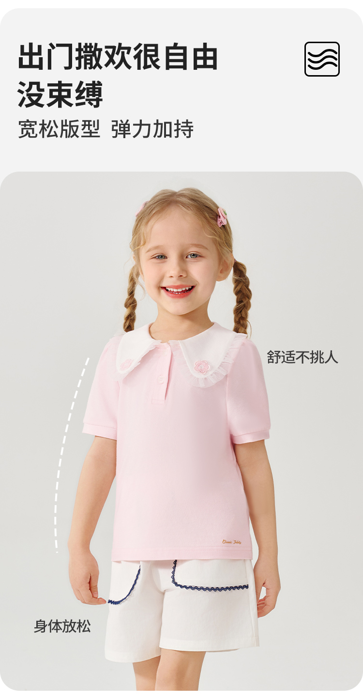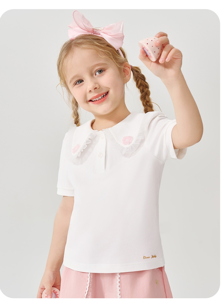 【90-130】【精典泰迪】女童夏季翻领短袖T恤(95%棉 5%氨纶)