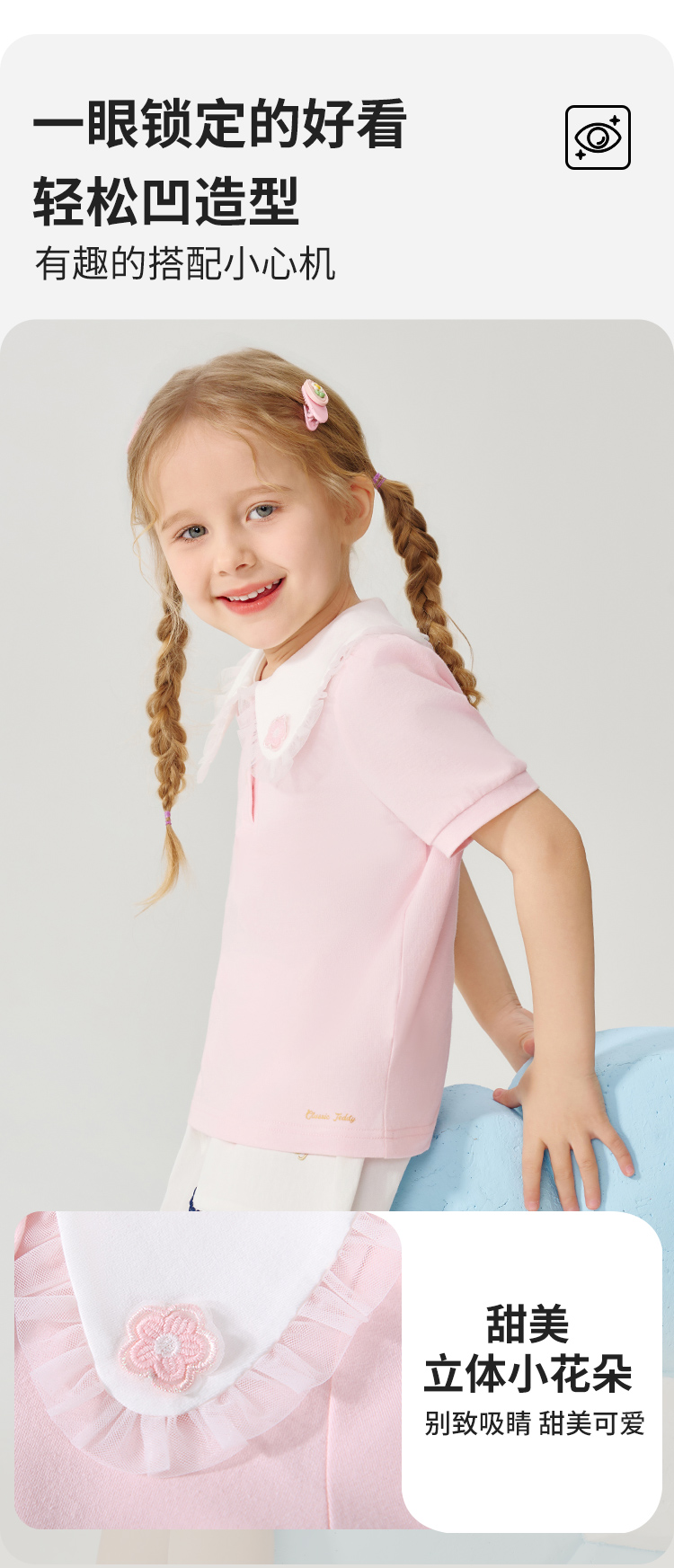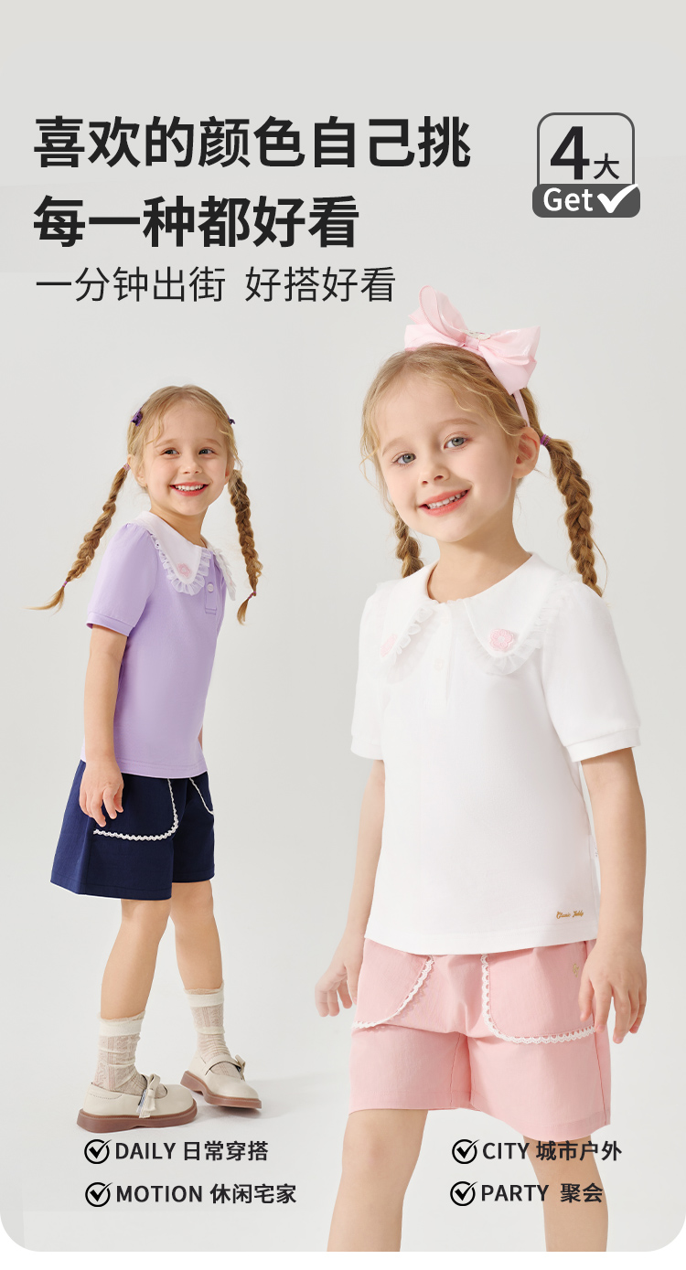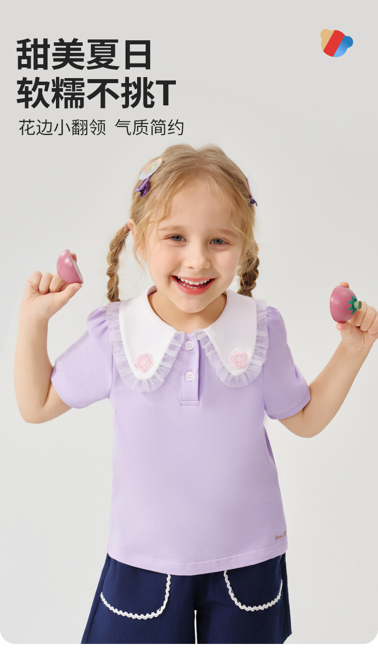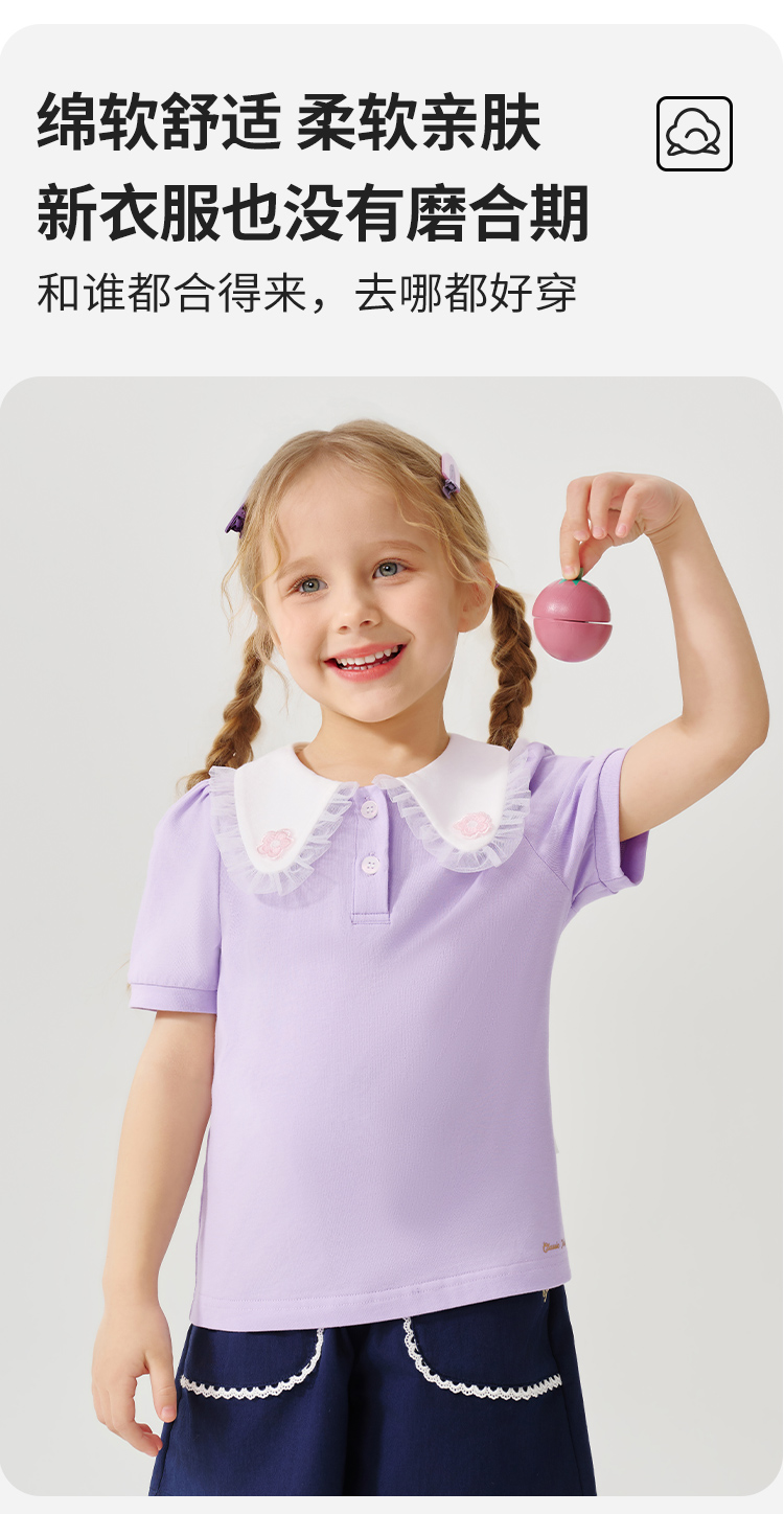 【90-130】【精典泰迪】女童夏季翻领短袖T恤(95%棉 5%氨纶)