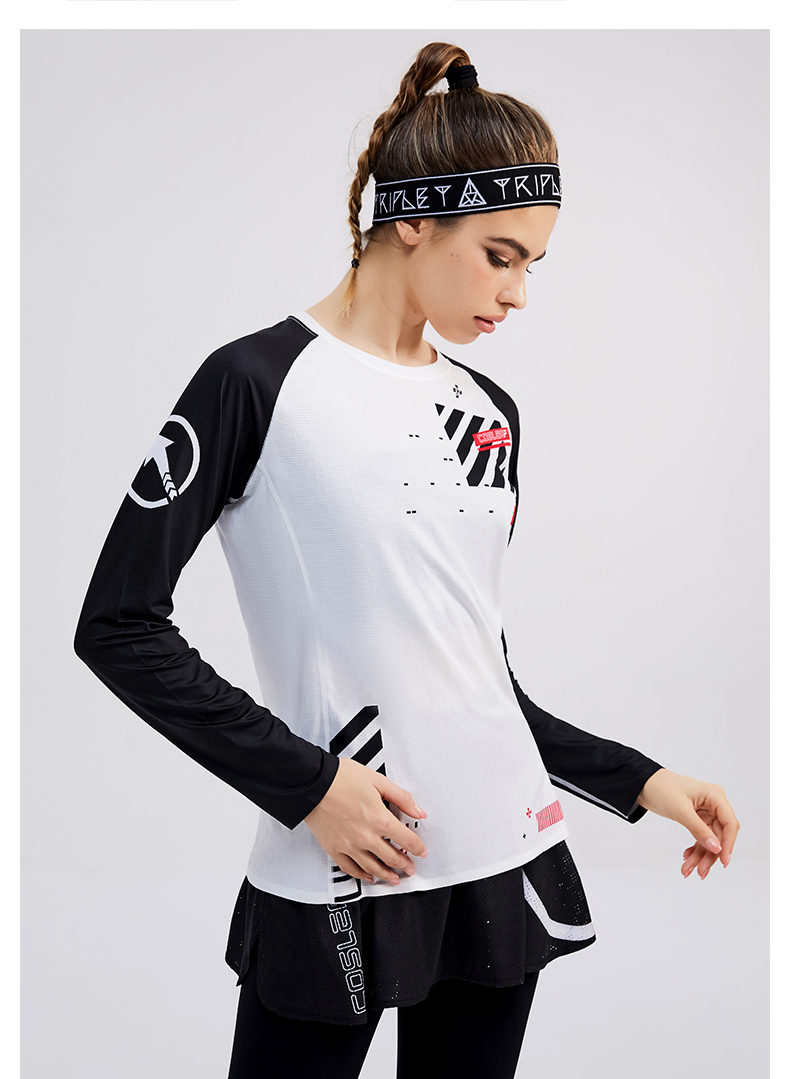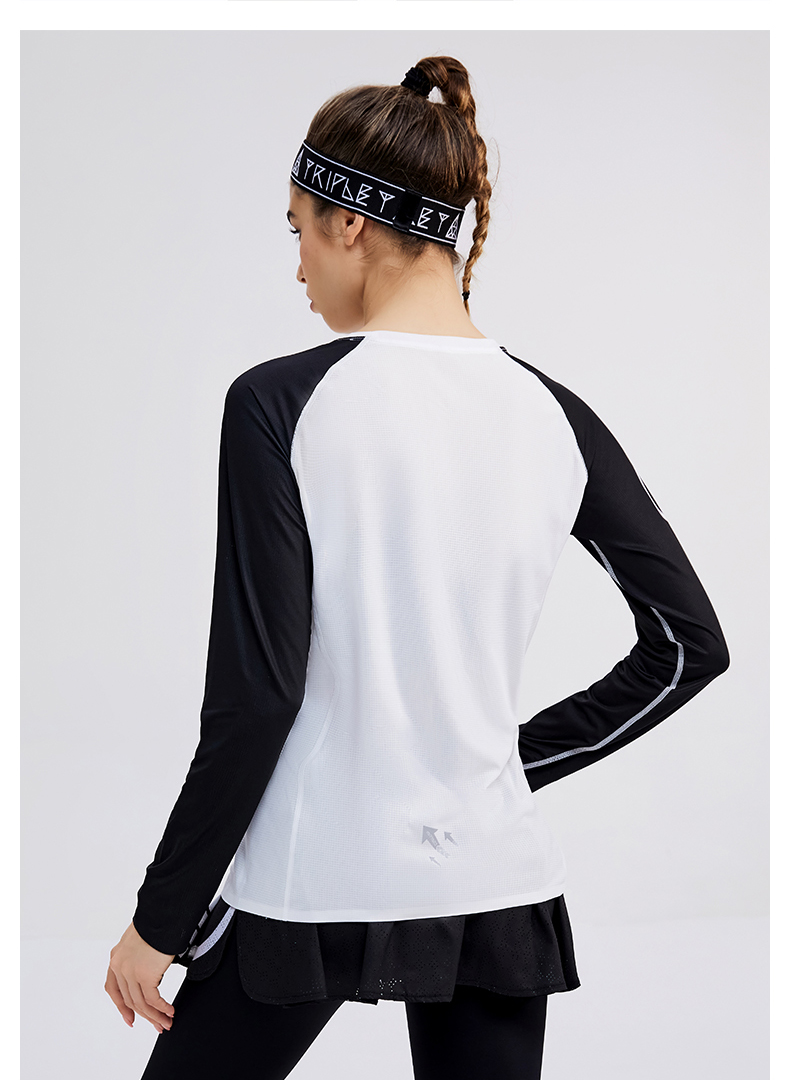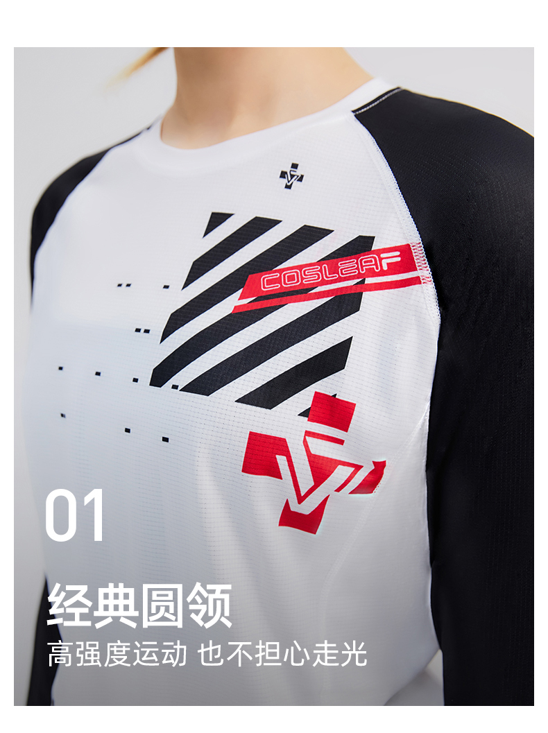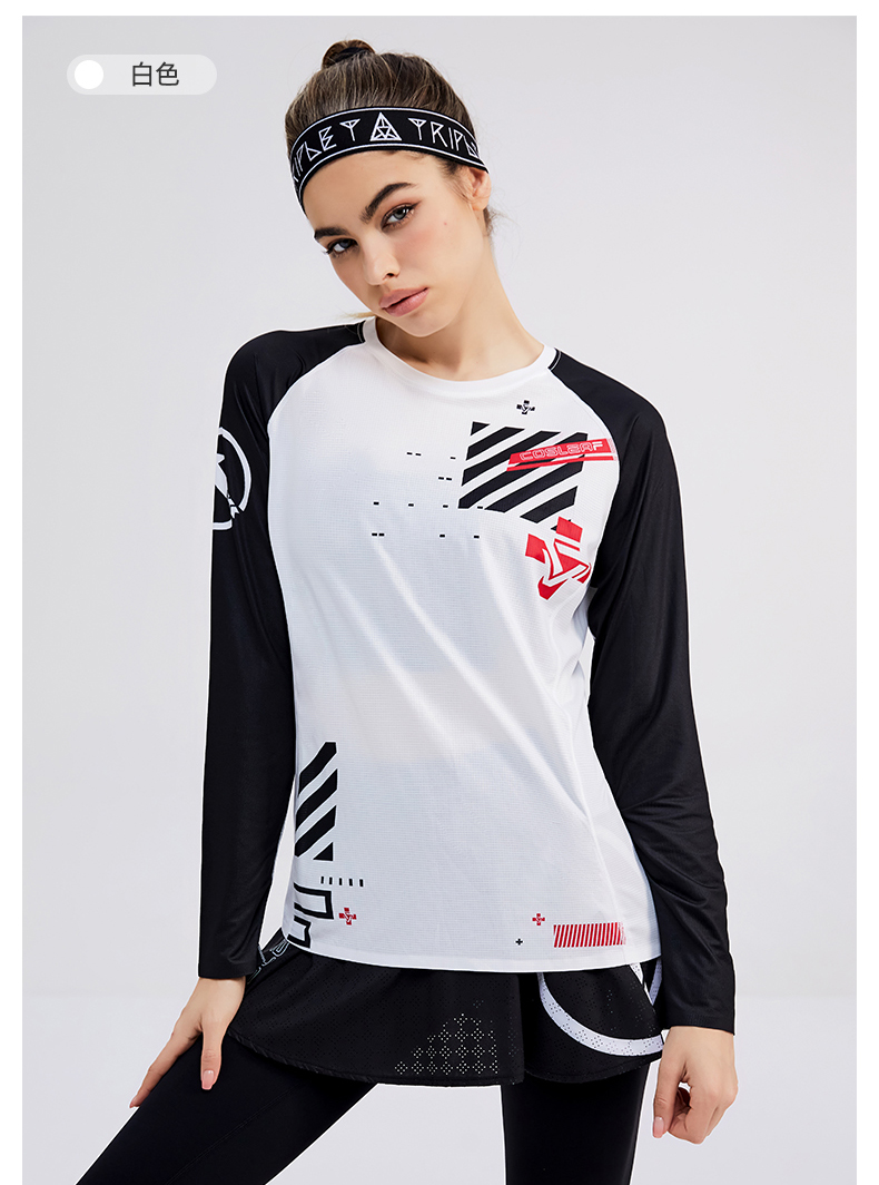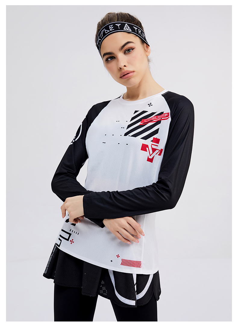科里芙印花拼接圆领运动长袖轻薄跑步健身透气上衣