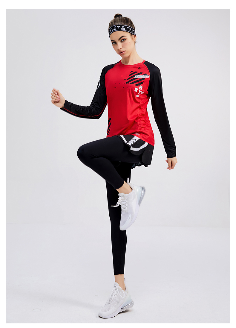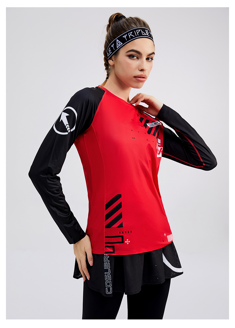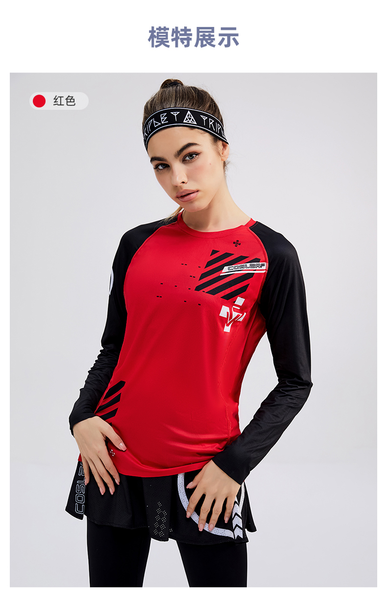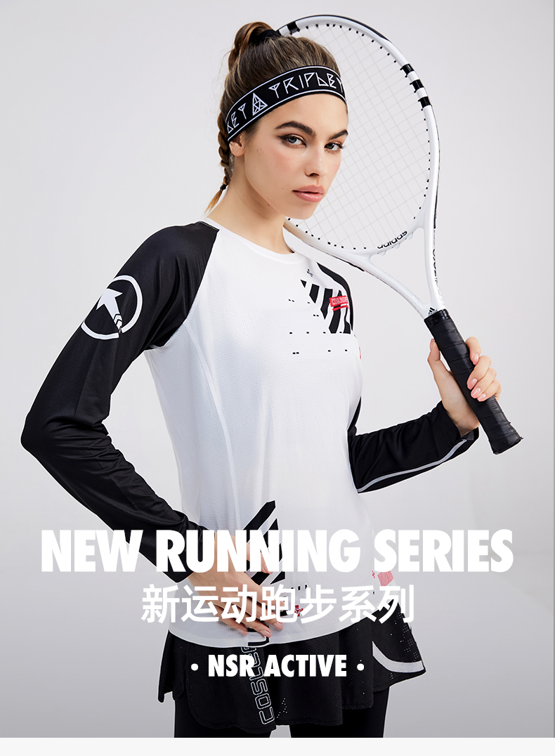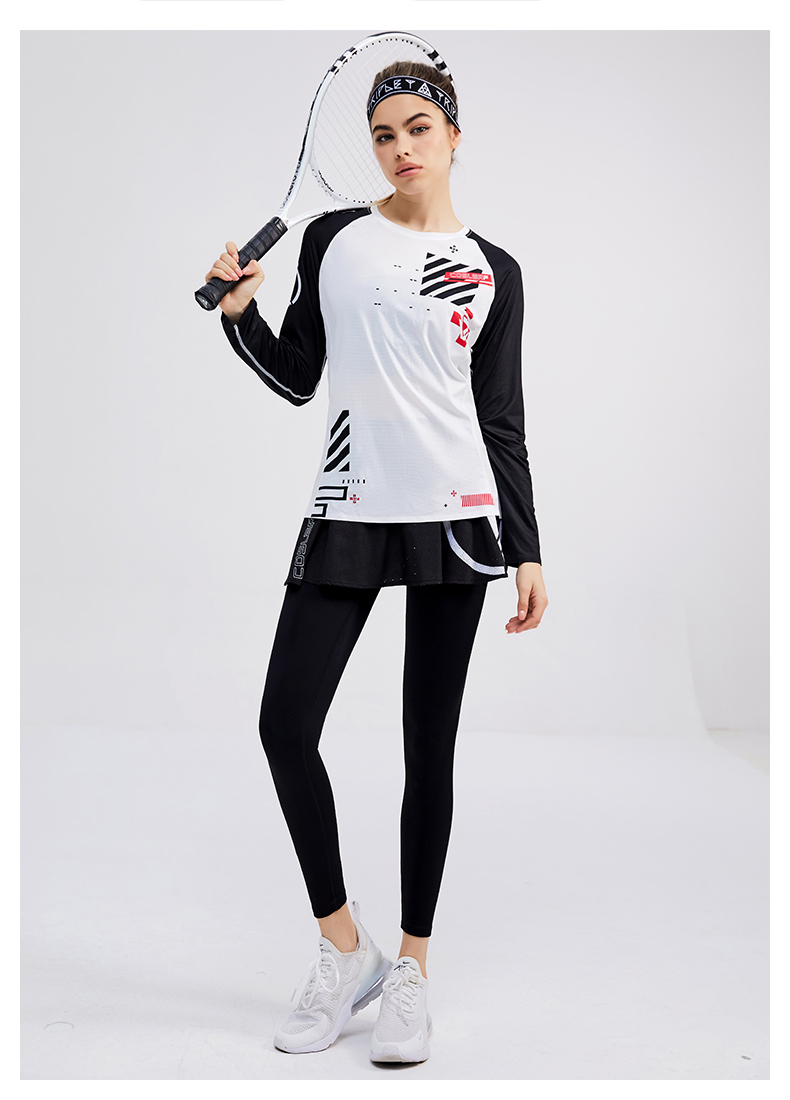 科里芙印花拼接圆领运动长袖轻薄跑步健身透气上衣