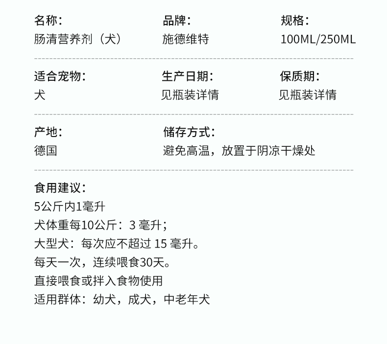 德国 cdVet 施德维特 肠清营养剂(犬) 250ml