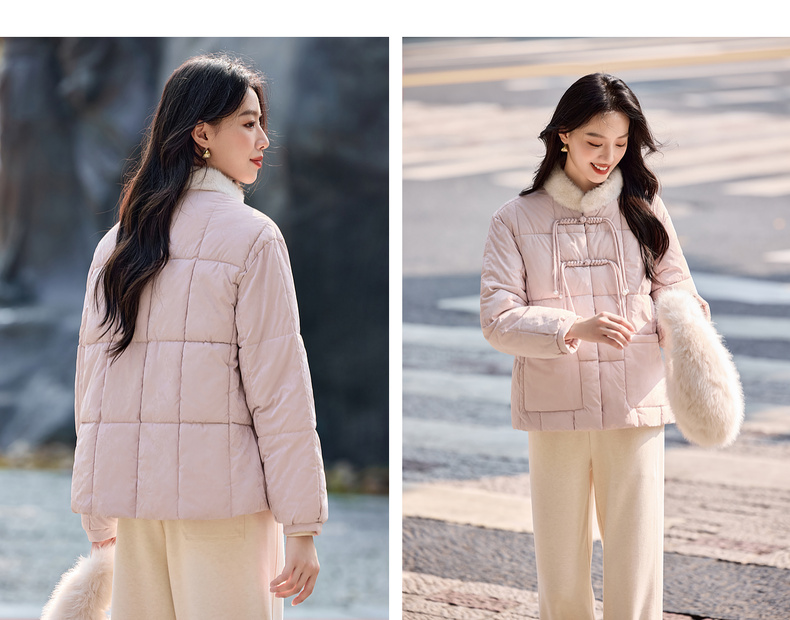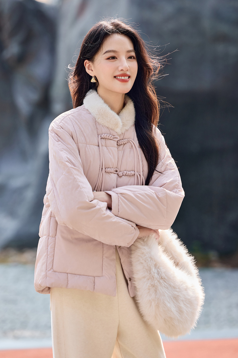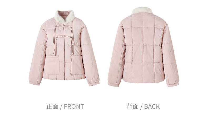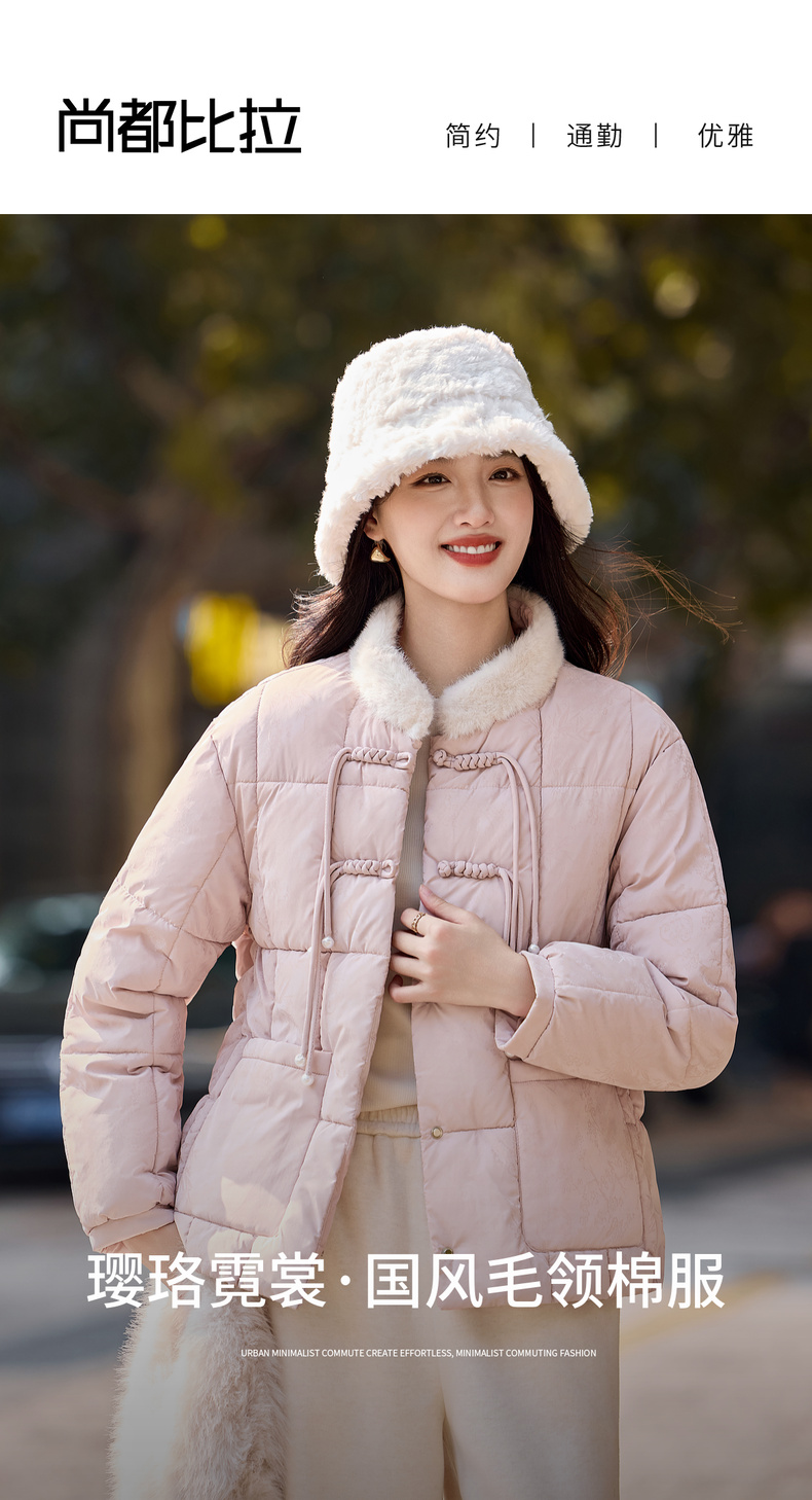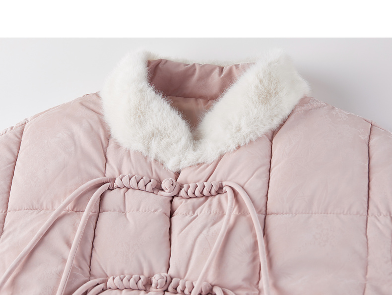 【内购】【夹层保暖】通勤国风撞色毛领双长尾盘扣宽松落肩显瘦加厚棉服-W54MA4671