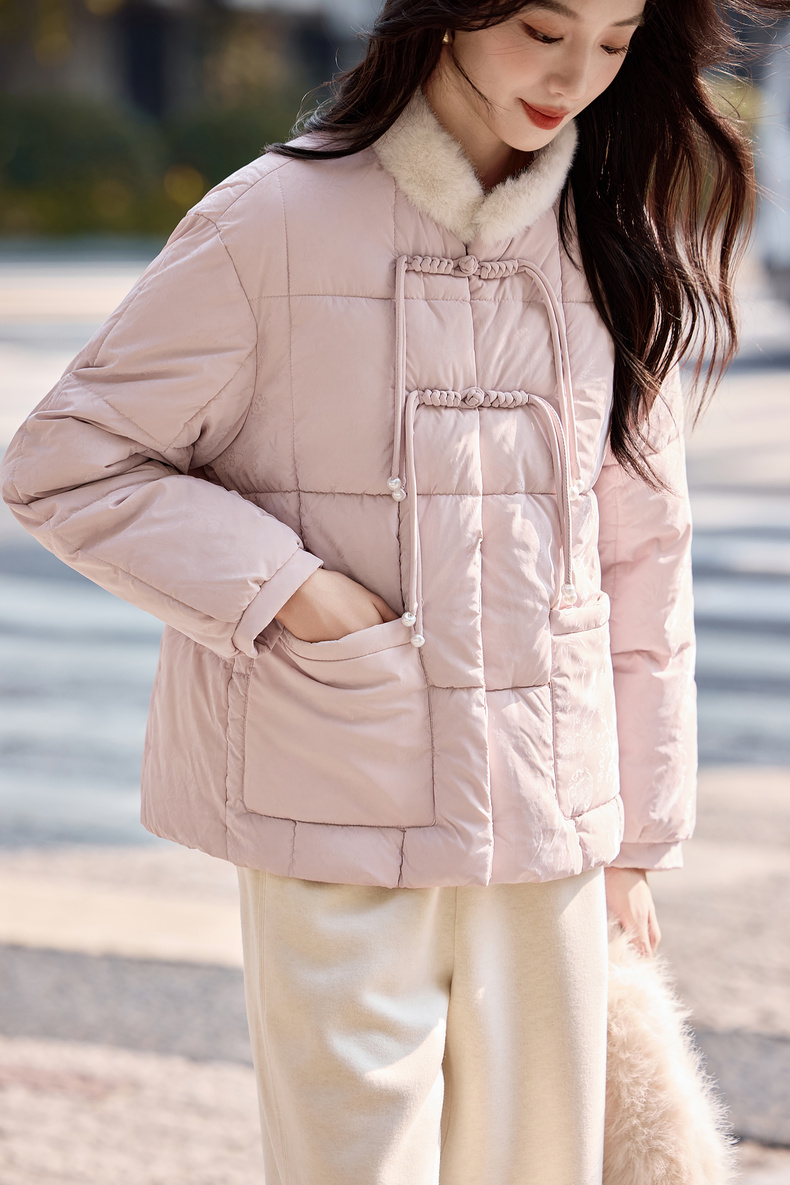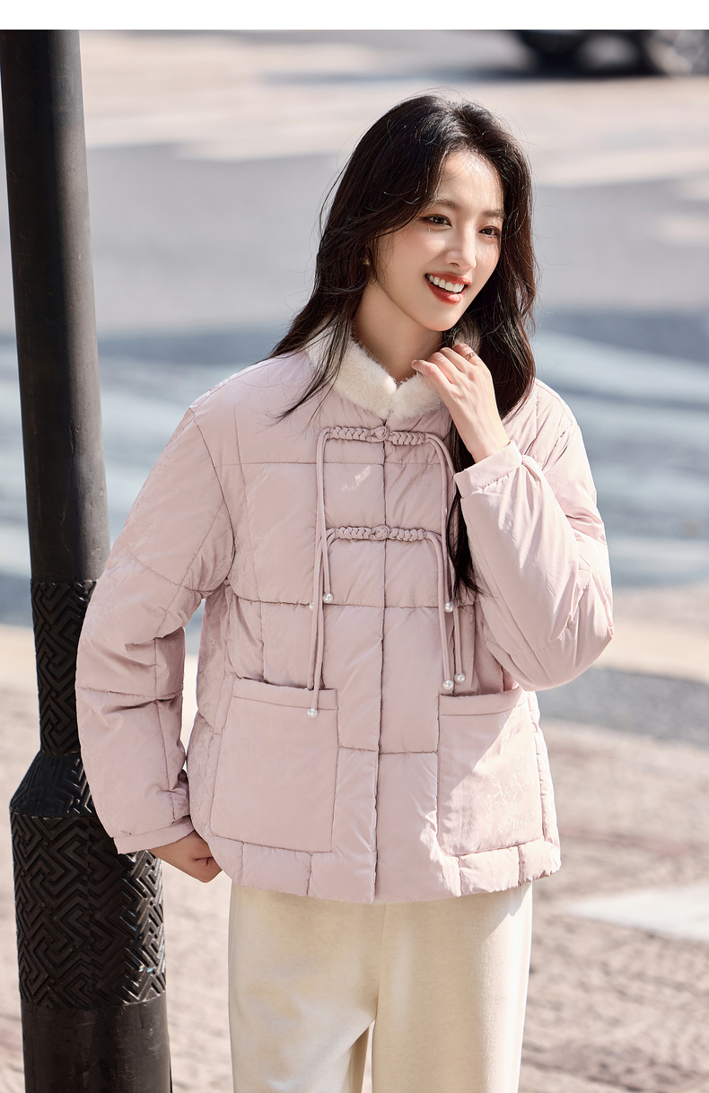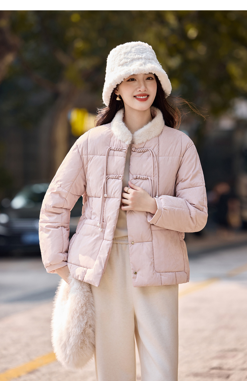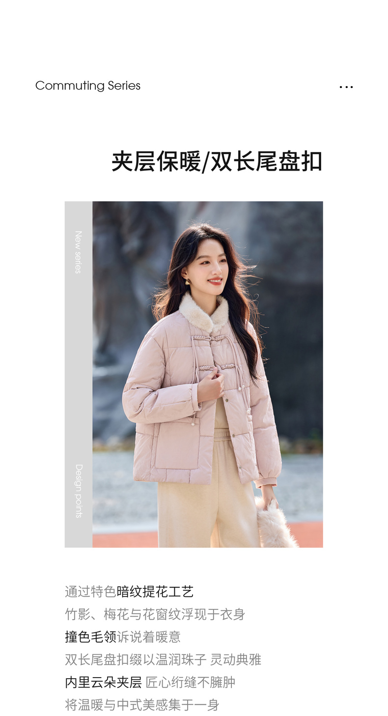 【内购】【夹层保暖】通勤国风撞色毛领双长尾盘扣宽松落肩显瘦加厚棉服-W54MA4671