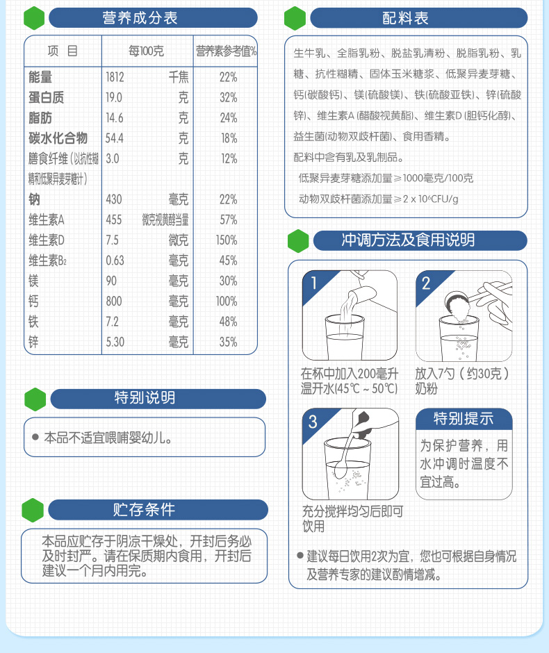 君乐宝 成人粉乐钙益生菌中老年营养奶粉 800g【君乐宝】