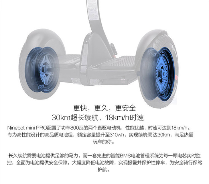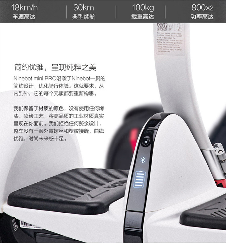 纳恩博(Ninebot) miniPro九号平衡车加强版N3M300智能电动平衡车儿童成人高配卡丁车组件 白色
