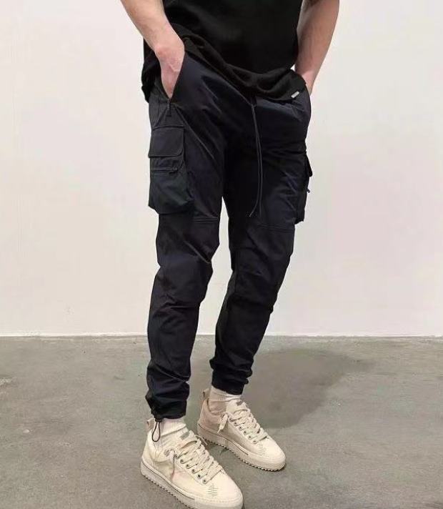 裤筒是逐渐收的小微锥 小腿是相对包裹的 也是为了运动时的 紧衬利落吧