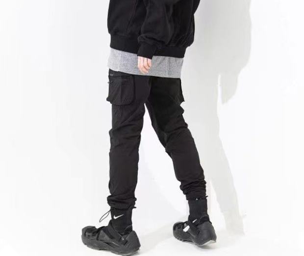 大腿两侧 是很典型的工装口袋制式 粘扣翻盖口袋+拉链小口袋 独立分开
