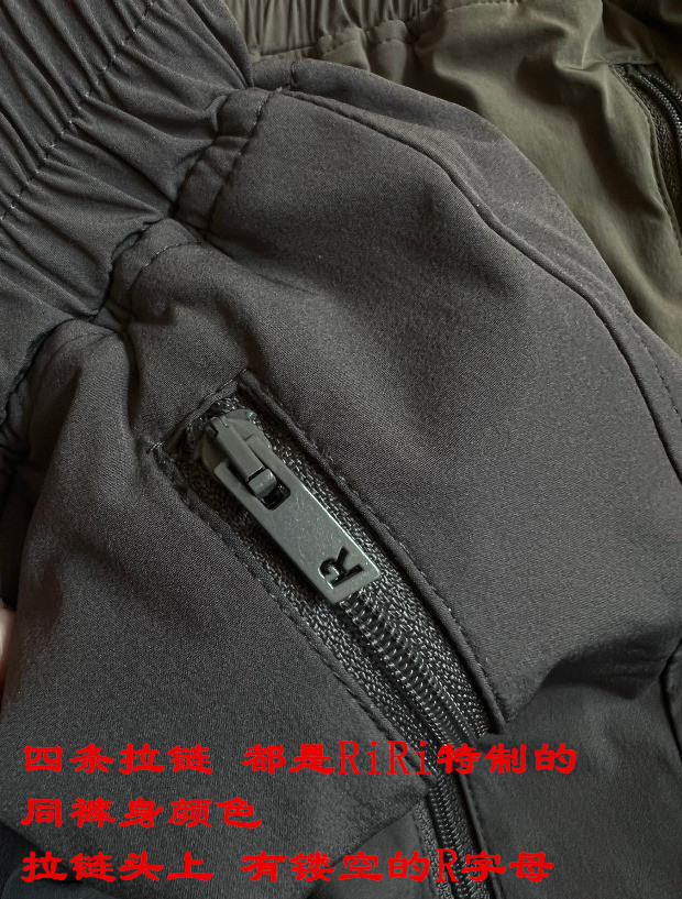 四条拉链 都是RiRi的 同裤身颜色 拉链头上 有镂空的R字母