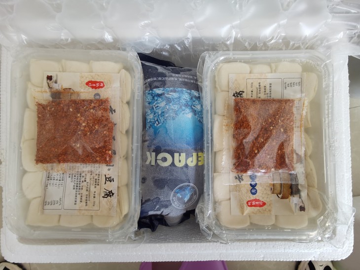 盒装豆腐+真空袋+气泡+冰袋+泡沫箱