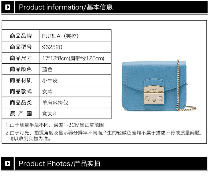 【香港直邮】Furla 芙拉 女士蓝色皮单肩包斜挎包 962520