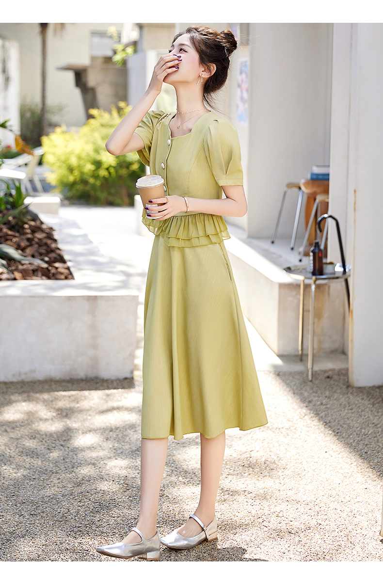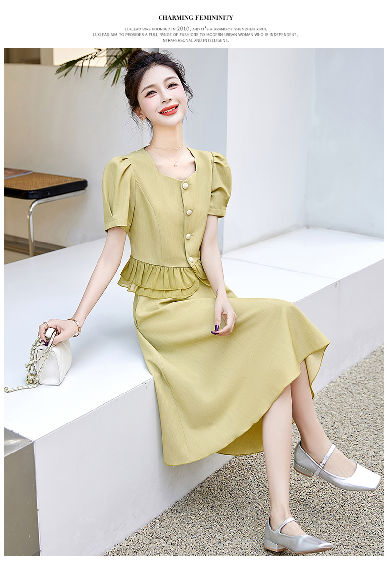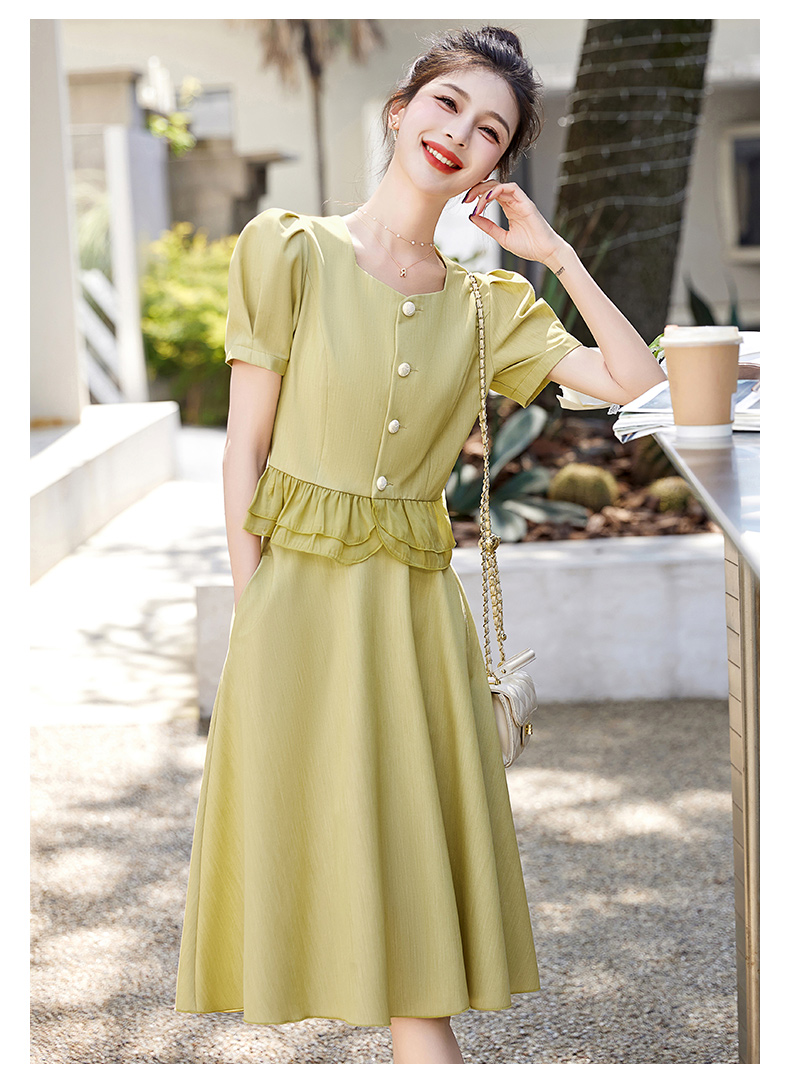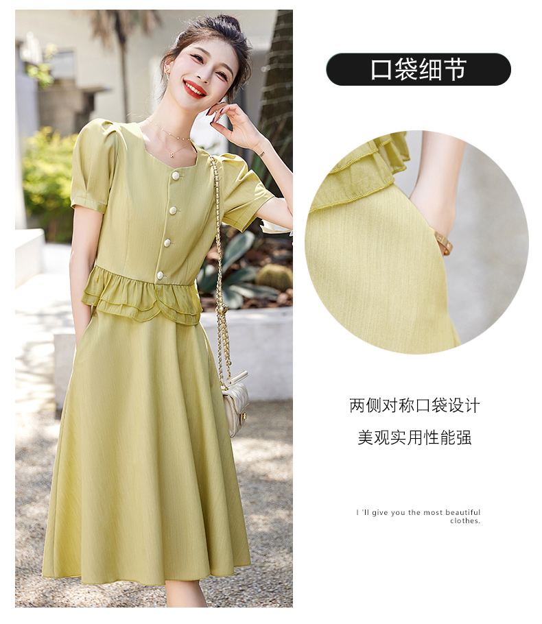 小众气质,短袖夏装高级感设计感斜领开叉包臀裙法式连衣裙HT-YX8525