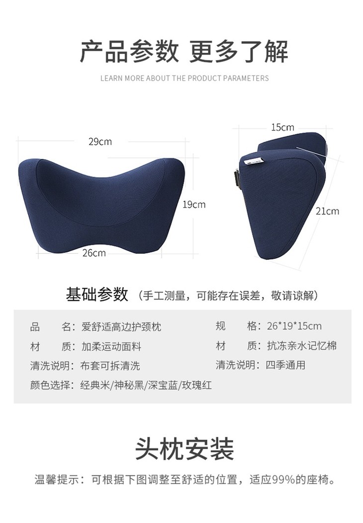 爱舒适高边环抱护颈枕 3D双曲面贴合更舒适 运动面料柔软亲肤 高边护颈 四季通用